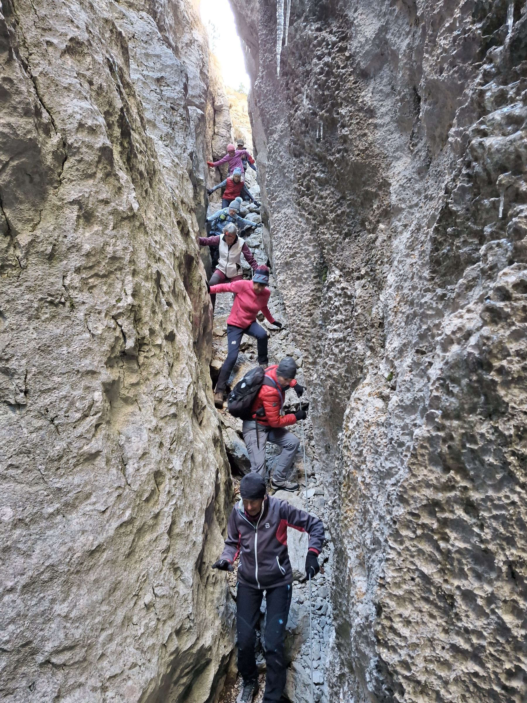 Mardi 18 novembre, j’encadre ma première sortie sous le regard bienveillant de Dominique.Un circuit permettant d’aborder les nombreuses tannes (grottes) sur les pentes de Margeriaz, une belle arche de pierre et la traversée en aller/retour du golet de l’agneau qui traverse la falaise au fond d’un canyon.Départ dans le brouillard, montée tranquille dans une belle […]