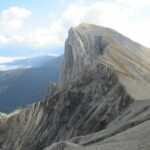 Arrivés au col, le vent se fait sentir. Le début de la croupe qui mène au sommet est bien soufflé mais nous sommes vite stoppés par une grosse accumulation de neige qui forme une corniche assez impressionnante.