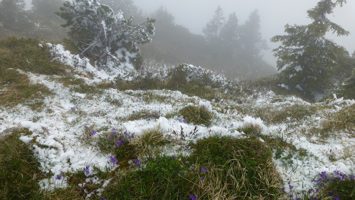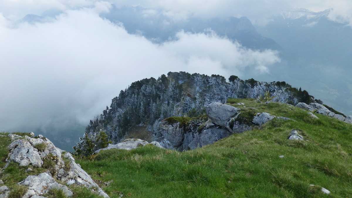 Nous étions 6 pour ce joli tour fait dans des conditions presque hivernales: froid, brouillard alternant avec éclaircies, bise et un peu de neige et de givre au Nord.