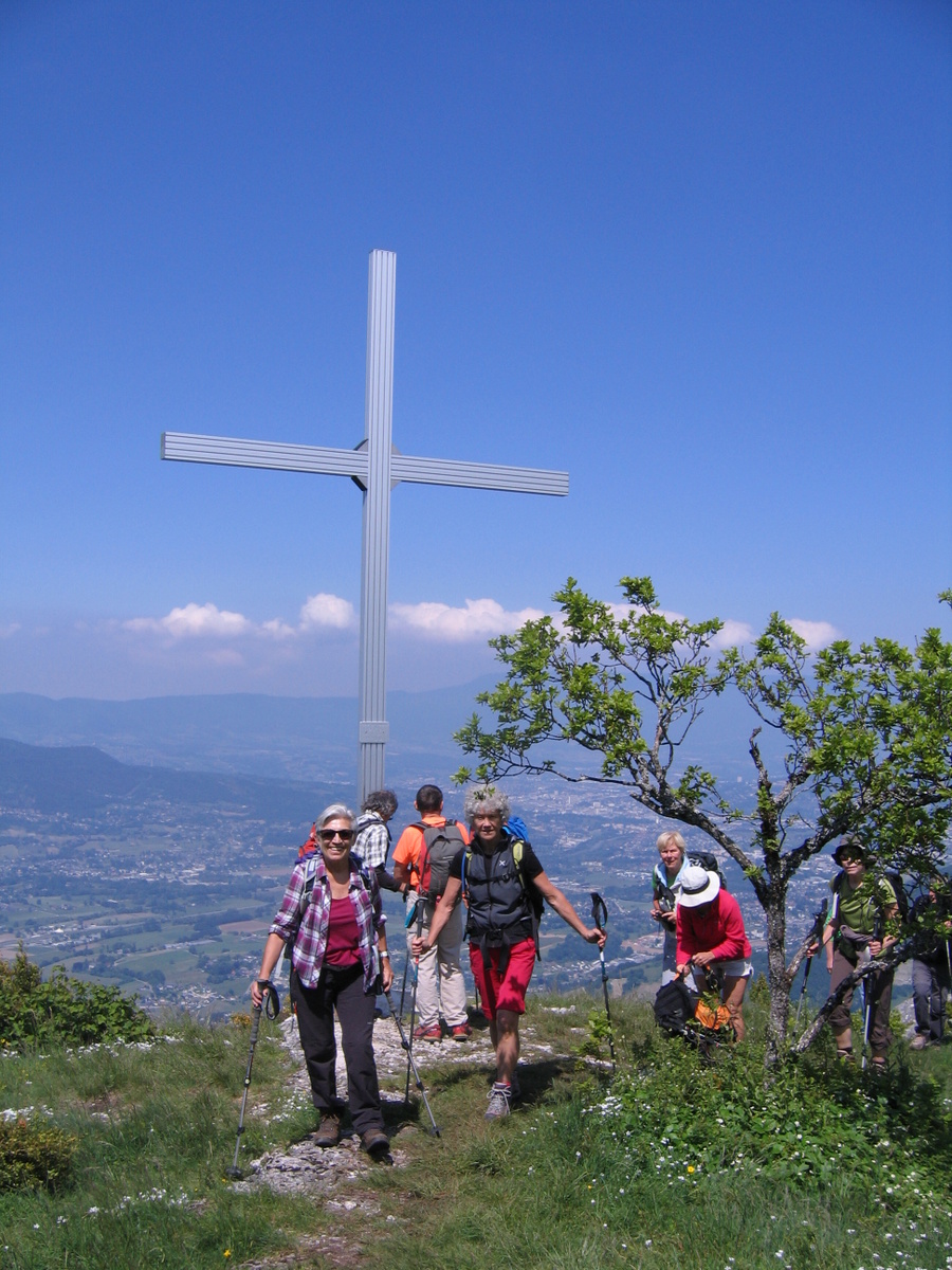En partant de Chignin (joli village vigneron) , nous avons escaladé d’abord le Roc de Tormery (échelles), puis atteint la croix de Tormery 1135 m avant de faire Le Tapin… ( 1202 m quand même ).