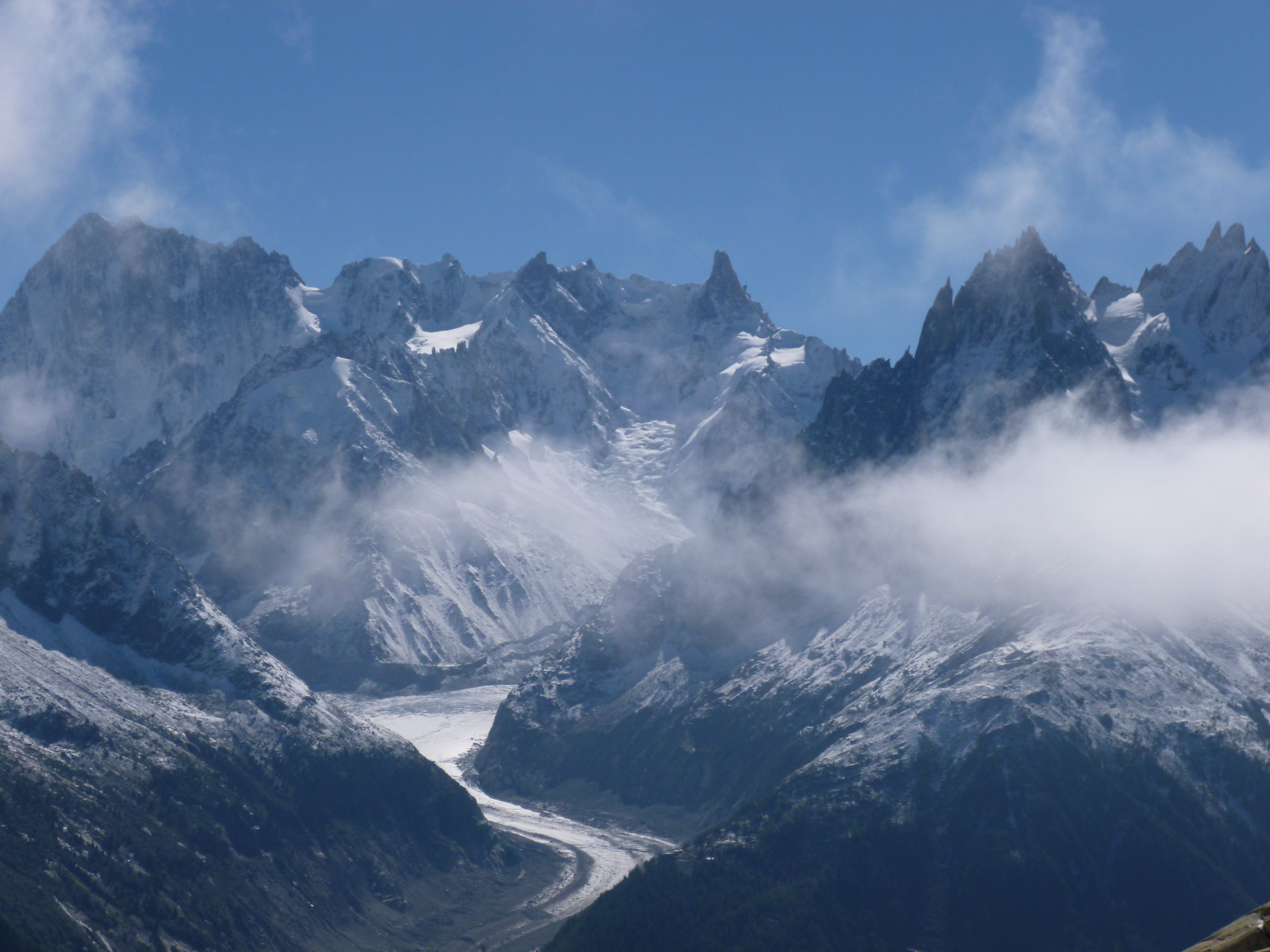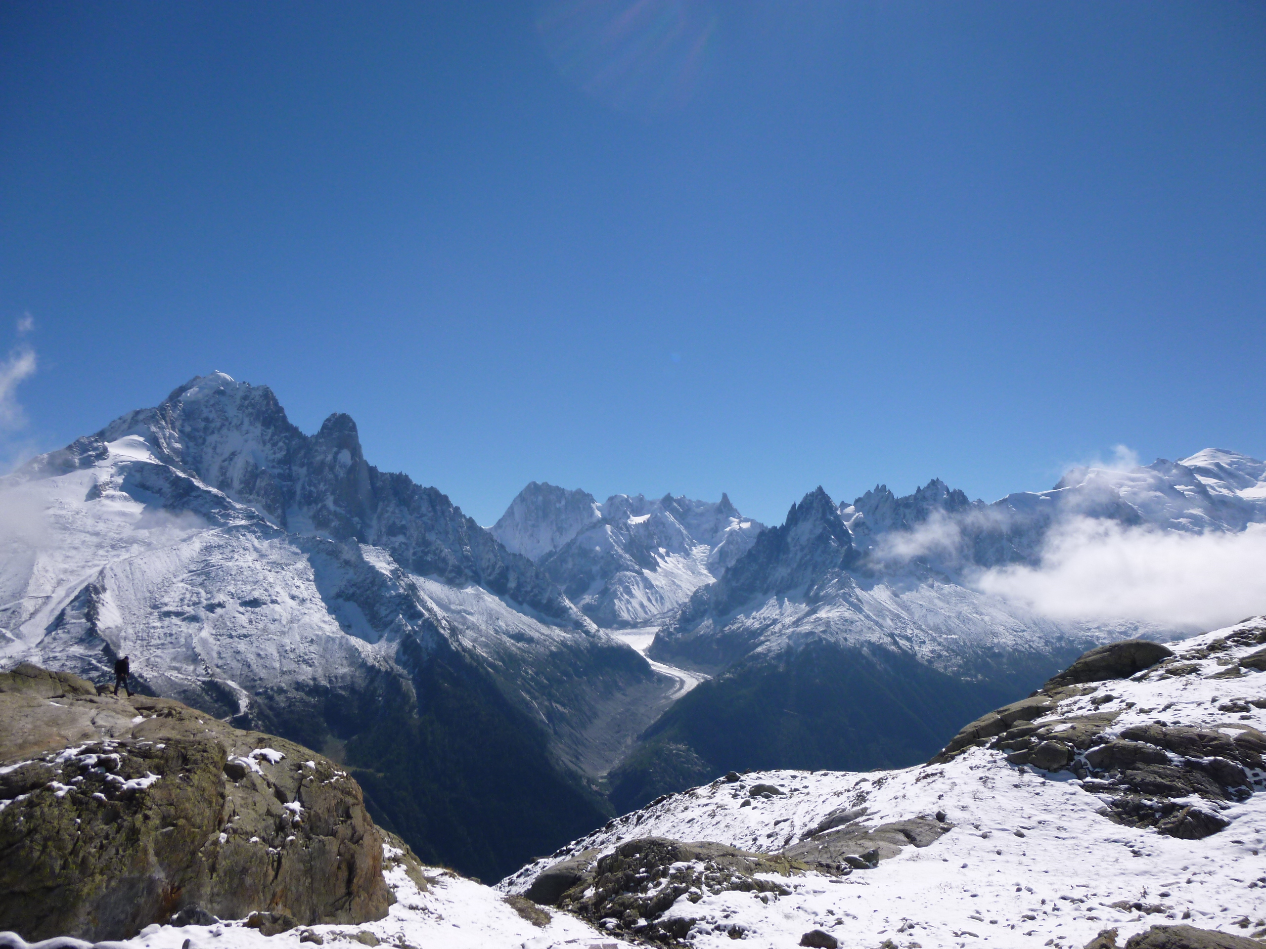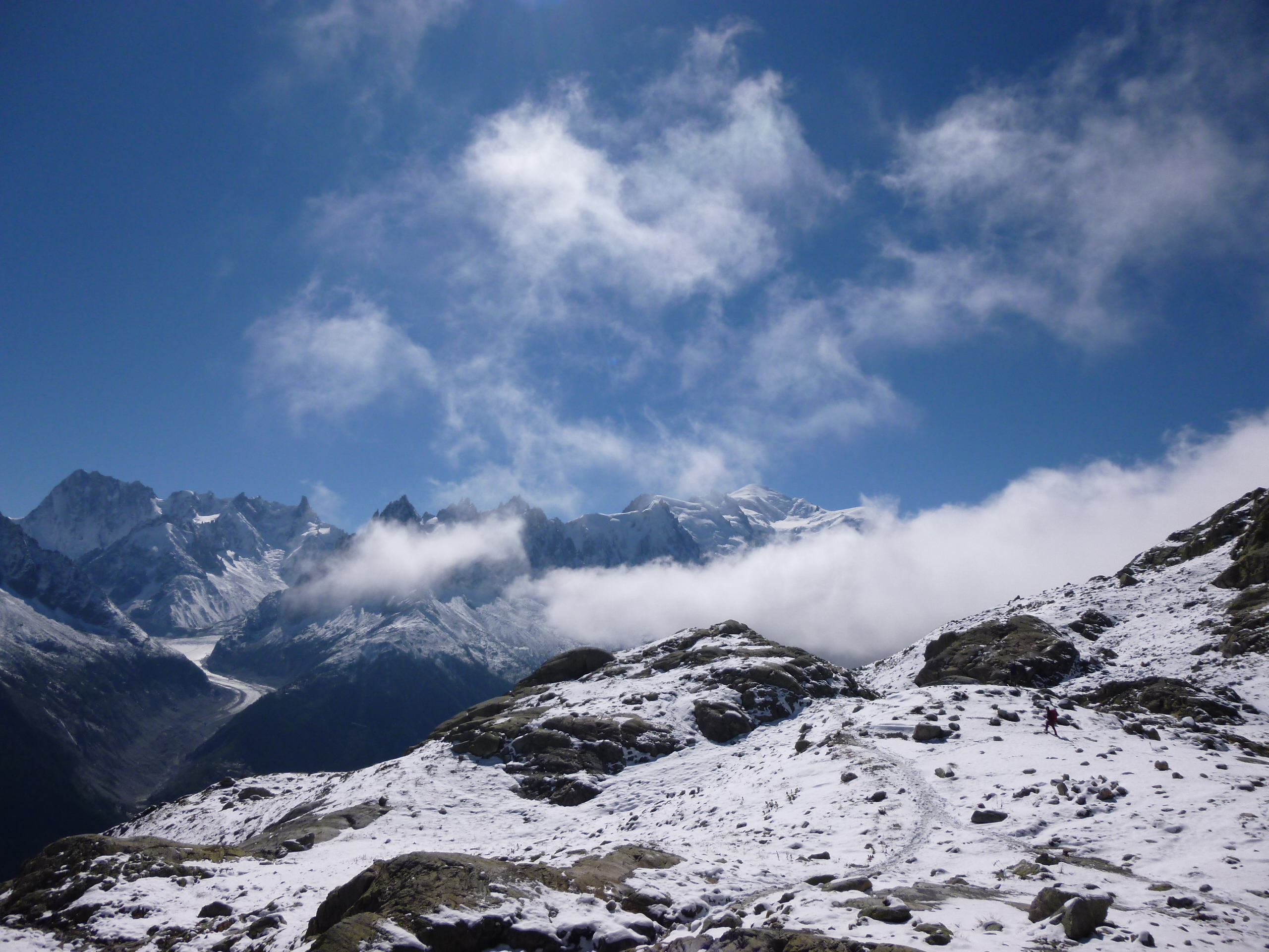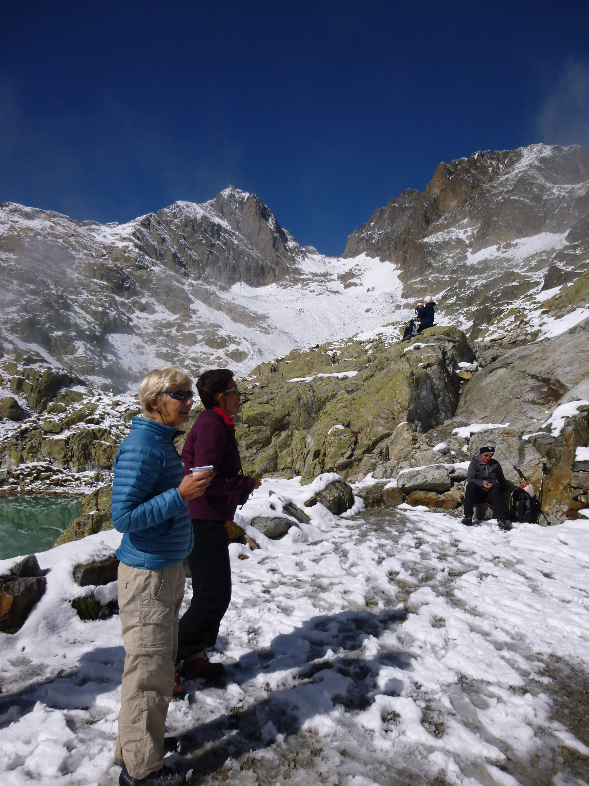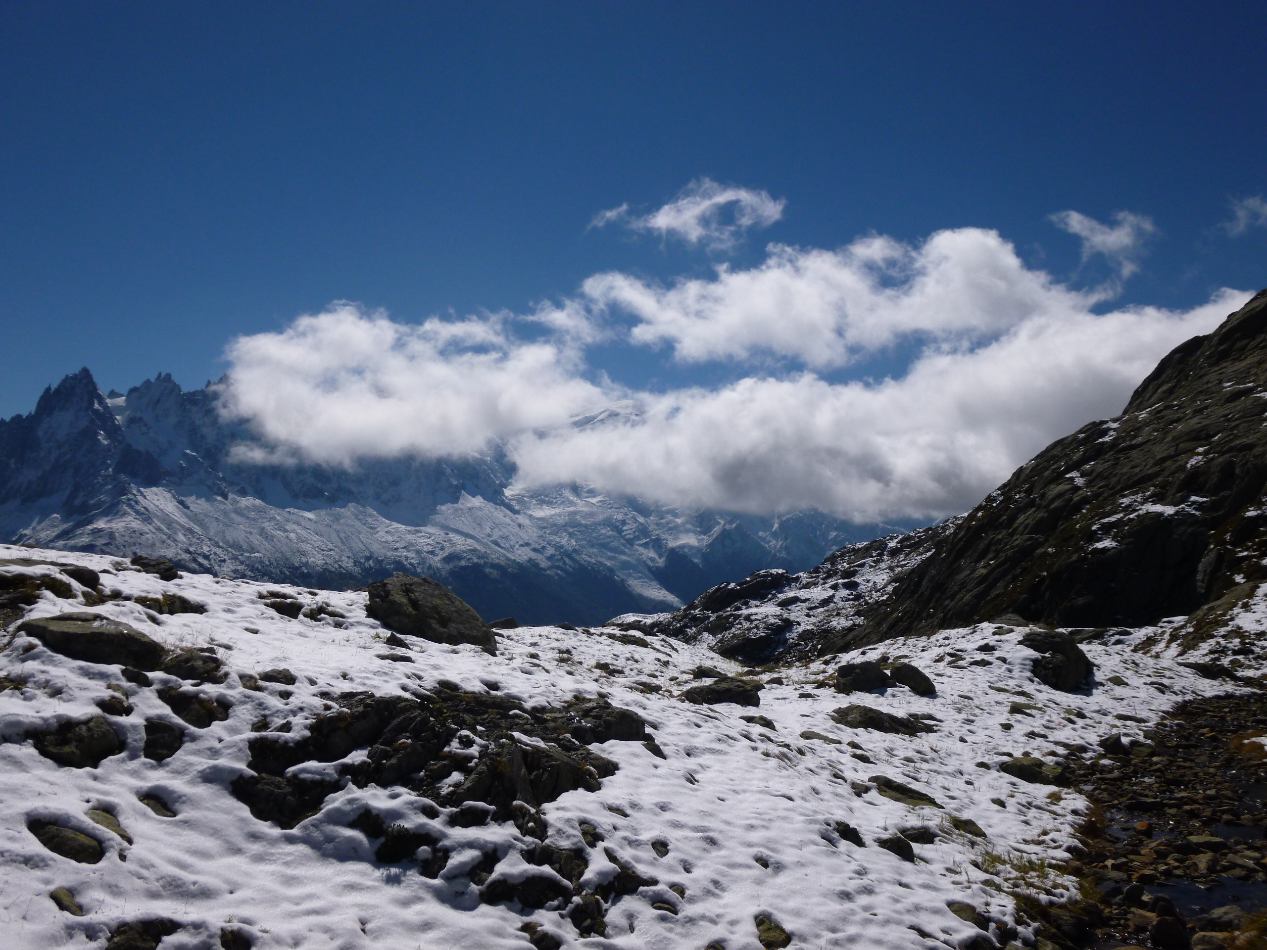 Une quinzaine de personnes pour le tres beau et tres classique circuit du Lac Blanc ,départ de Tré Les Champs retour par les échelles, presque 1100m de dénivelé. Le temps était magnifique, un peu de neige à partir de 2000m, une forte bise empêchait la brume de s’installer. Le paysage était grandiose, le Mont Blanc immaculé, les glaciers blancs et propres.