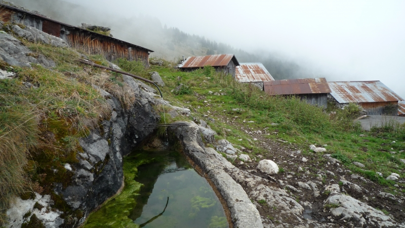 Montée par une longue piste forestière, qui mène à travers bois aux chalets du Trot à 1400m (photos 1 et 2) puis à ceux du Criou (photo 3).