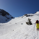 Une sortie dans le Chablais, au départ d’Ardent, entre le lac de Montriond et Les Lindarets. Nous empruntons les pistes enneigées (très petits déchaussages), puis la belle combe des Drobounes jusqu’à la crête qui domine Avoriaz. La crête finale se fait dans l’herbe, skis sur le sac. Au sommet, à 11h15, il fait déjà chaud, et nous descendons sans tarder par la combe des Cases, en neige molle mais très skiable. Casse-croûte sur l’herbe à la Lécherette, avant de finir la descente et d’aller boire un coup au bord du lac de Montriond. 5 participants à cette belle journée ensoleillée. Dénivelé 1150m Encadrement : Marcel Hausard