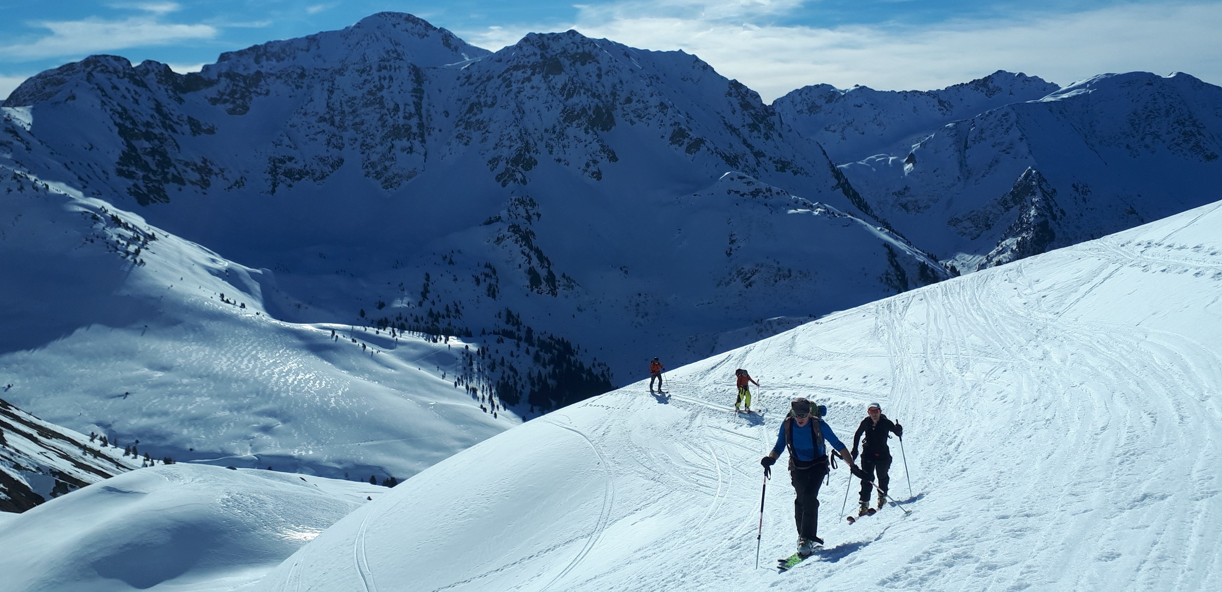 Boucle Pointe de la Grande Journée : Montée par le télésiège du Piapolay (au Planay), descente au col de la Bâthie, montée à la Grande Journée (2460m). Descente pente nord-est puis montée au Pic de Vache Rouge (2379m). Retour à la station par le Couloir du Grépets. Bonne neige dans l’ensemble.