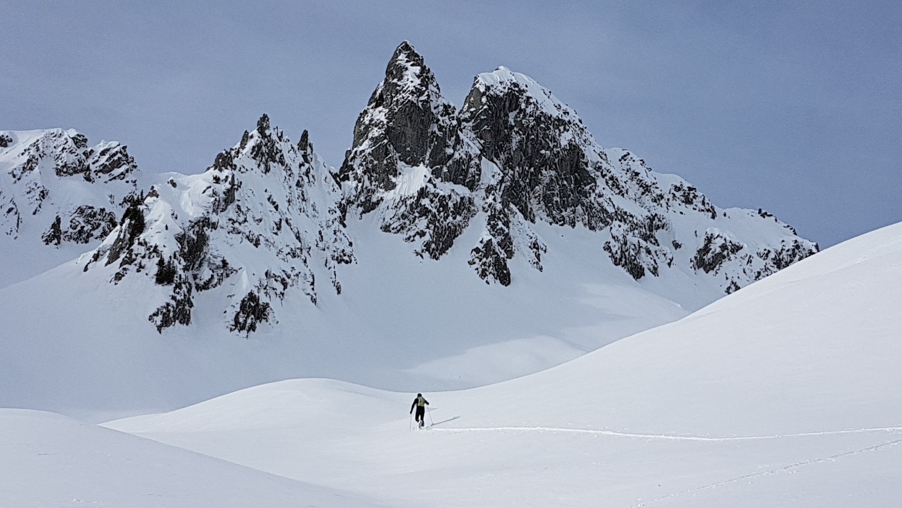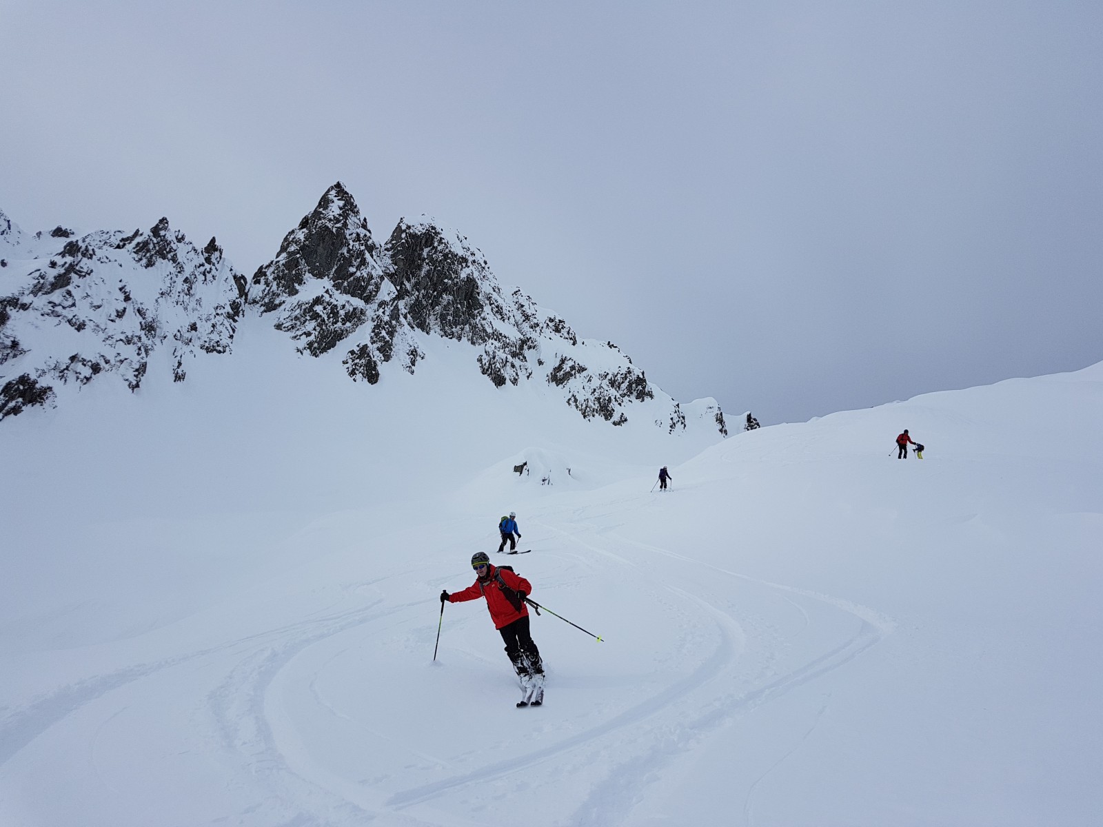 [ngg src=”galleries” ids=”646″ display=”basic_thumbnail”]Départ de 8 participants vers Bonneval Tarentaise en Lauzière pour aller à la pointe du Glais Rouge. Au village (à 1000m), nous voyons que la neige est absente suite aux pluies précédentes, aussi est-il décidé d’aller en voiture au Biollay, à 1300m. Effectivement, la neige est là dès le départ sur la route allant vers La Pautaz. Arrivés à cet endroit, les traces vont vers le col du Loup, mais nous traçons sur la route, jusqu’au pont de Gelon (1600m). De là, nous remontons le ruisseau du Villard, puis attaquons en une série de conversions, dans 20cm de neige fraîche sur fond dur, le couloir menant au replat, vers 1900m pour une pause bien méritée. Un skieur nous dépasse rapidement, et finira la trace jusqu’au sommet des Marmottes Noires (2331m), atteint après 3h30 de montée. Le soleil est voilé, mais le vent est faible, ce qui permet le casse-croûte. La descente se fera dans une neige excellente jusqu’à la route forestière : certains remettront les peaux, d’autres non, pour une petite remontée…et nous retrouverons les voitures avant 14h, puis la sympathique auberge de Bonneval pour clore cette belle journée.