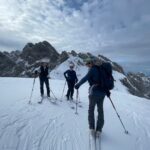 Le tour de la Haute Pointe, depuis Sommand, nous fait d’abord monter au sommet de la pointe de Rovagne, descendre au col de Cordon, en belle poudreuse, puis dans le vallon des Charmettes où il faut remettre les peaux pour remonter au col et à la crête de Chavannais. une nouvelle belle descente mous amène au pied du col de Chavan où il faut encore remettre les peaux. De ce col, on découvre la Haute Pointe, avec des dizaines de traces. Ce dernier sommet, et sa descente directe au parking, ne nous offrent qu’une neige bien moyenne, entre traces de ski et boules de purges. Encadrement de Marcel