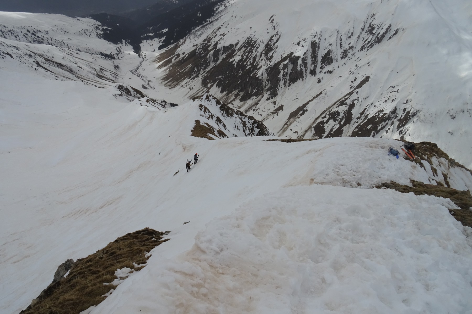 Départ au foyer de fond des Pars, et montée par le sentier d’été et les chalets jusqu’au Dôme de Vaugelas. Une traversée en légère descente sous le Grand Chatelet nous conduit au pied d’un couloir orienté nord-est, surmonté d’une corniche, remonté skis aux pieds jusqu’à une brèche. Une nouvelle petite descente, et la remontée finale de la belle pente sud de Plovezan jusqu’à son sommet skiable (2644m). Descente un peu irrégulière sur 100m, puis sur une belle neige de printemps vers la vallée de l’Ormente, à la chapelle St Guérin, puis à la piste de ski de fond jusqu’au parking.