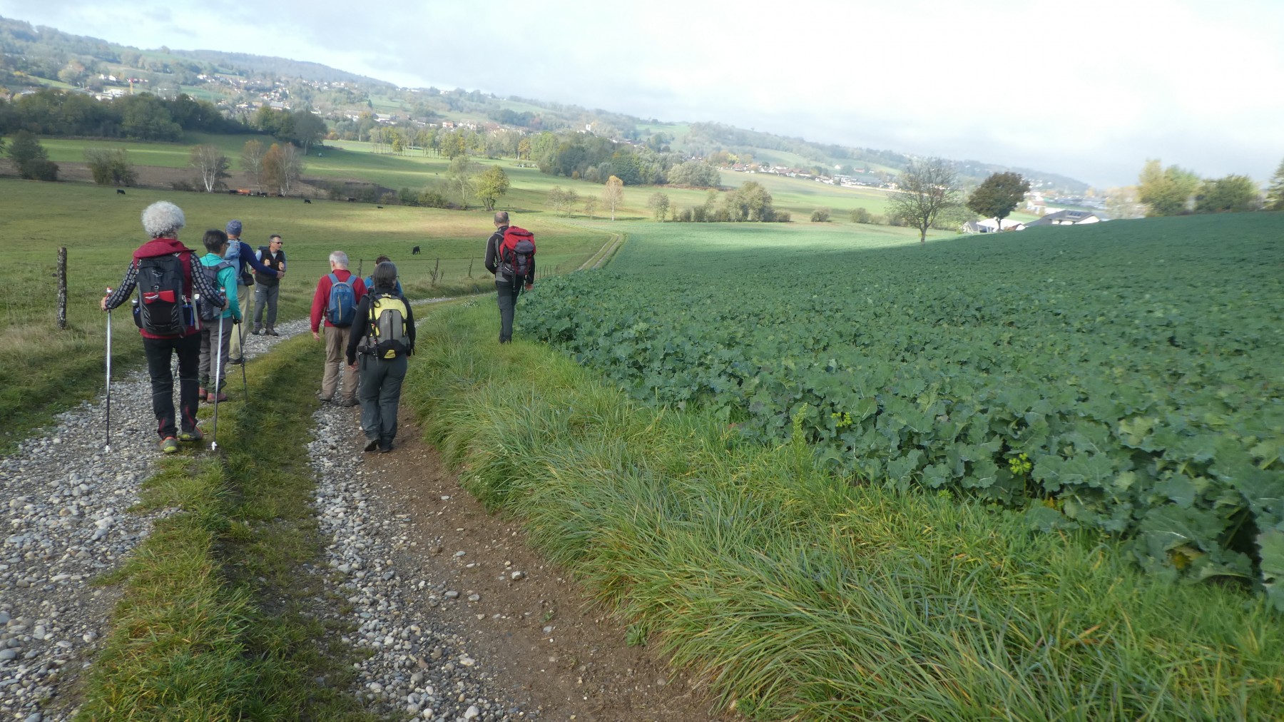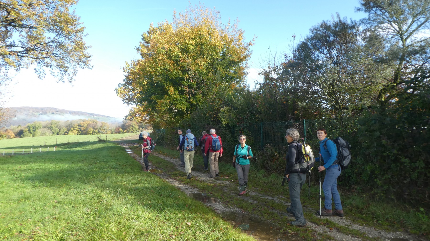 Qui écoute trop la météo reste au dodo ! Ce dimanche, contre toutes prévisions, un soleil généreux a régné sur cette belle journée automnale avant l’arrivée de la pluie retardée à lundi matin. A l’initiative de Serge, 8 randonneurs ont répondu présents pour cette belle boucle de 22 km dans la plaine de Sillingy.
