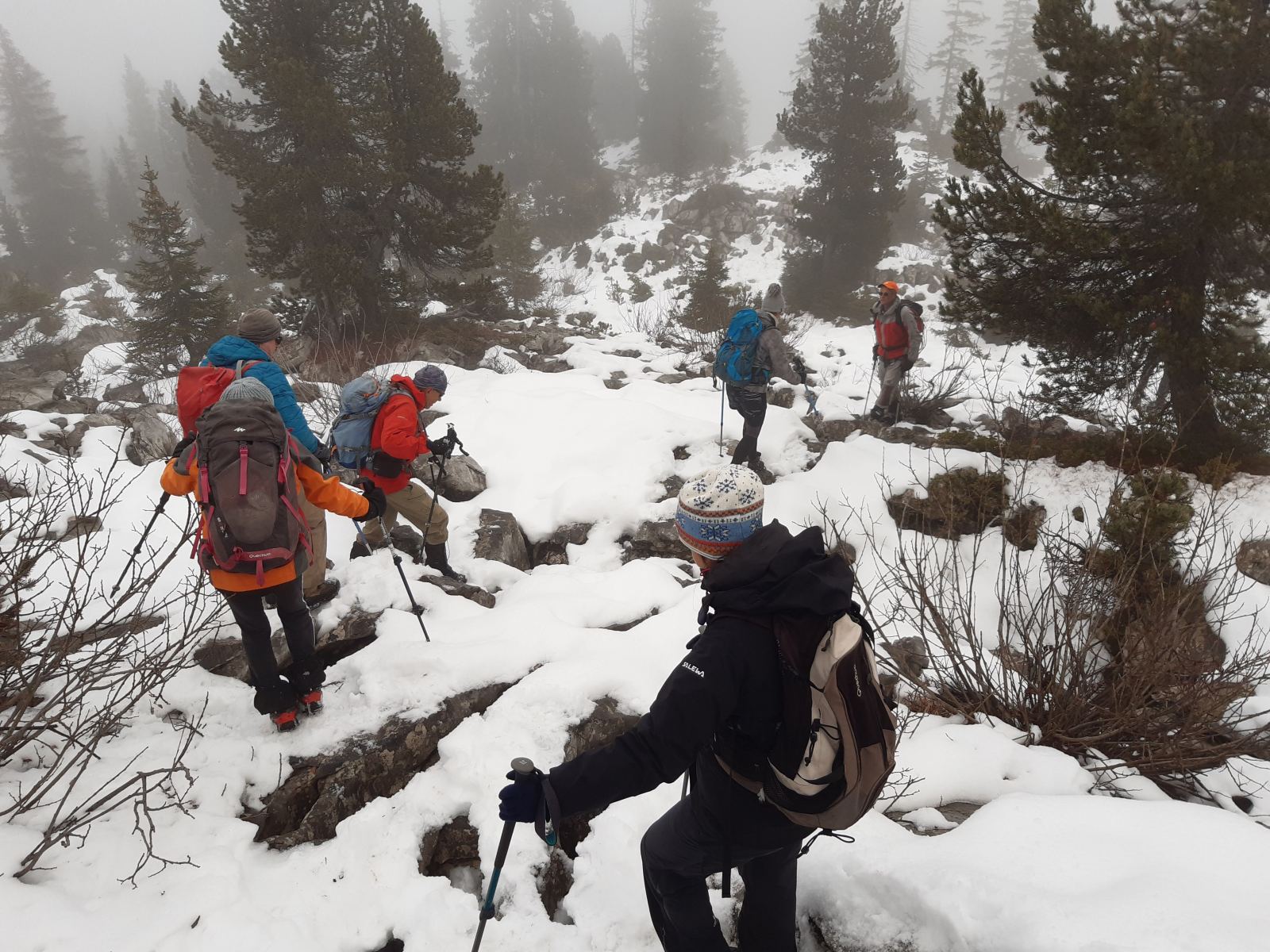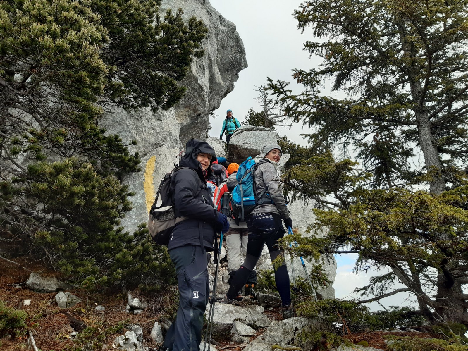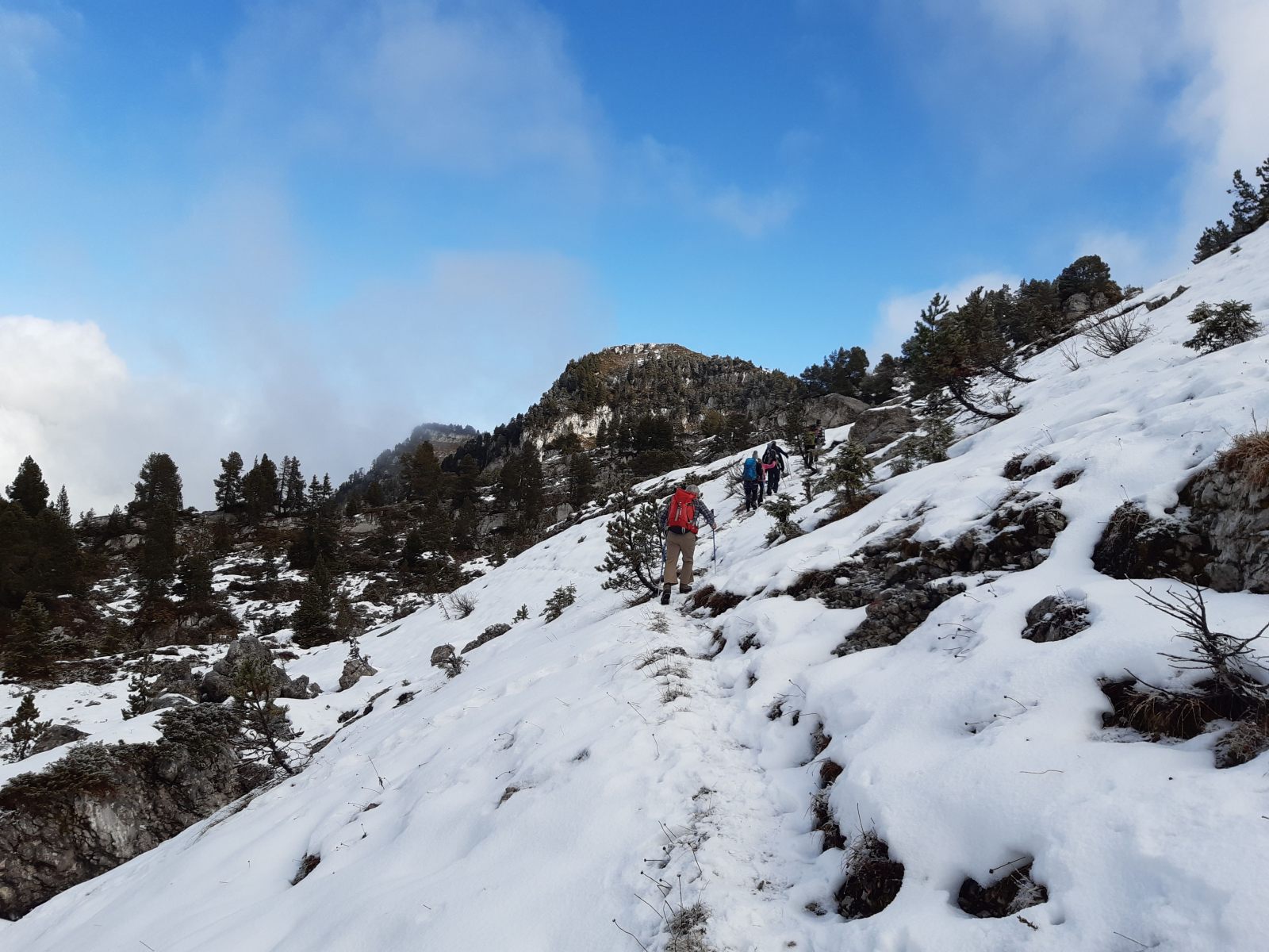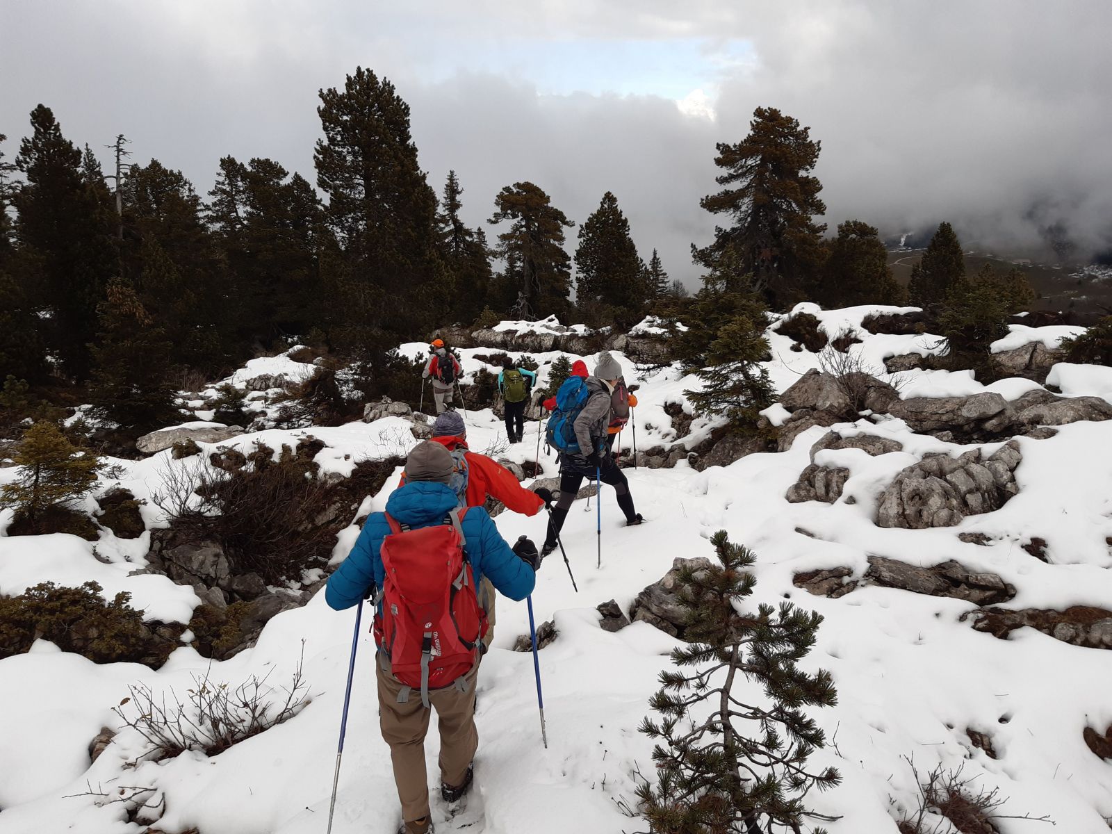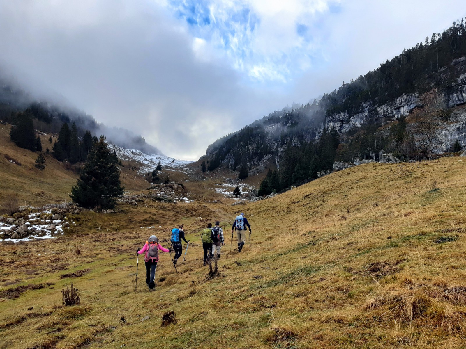 La météo de ce dimanche était mal partie, mais finalement elle nous a laissé parcourir les trois têtes des Glières ( l’Alpettaz, la Ronde , la Noire ). Bien sûr la sortie s’est déroulée parfois dans le brouillard ou sous une averse de grésil, parfois sous une éclaircie avec un soleil très timide . Mais le groupe voulait découvrir ce coin . En prenant les bonnes précautions dans les zones enneigées et glissantes nous avons pu réaliser ce parcours qui s’est terminé autour de chocolats et vins chauds. Merci à tous. Serge