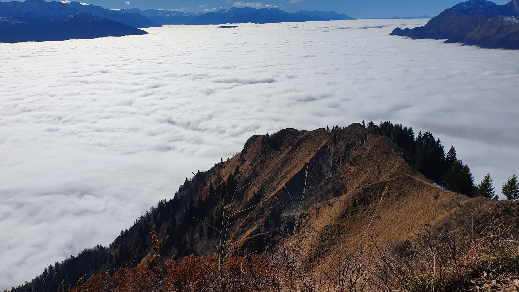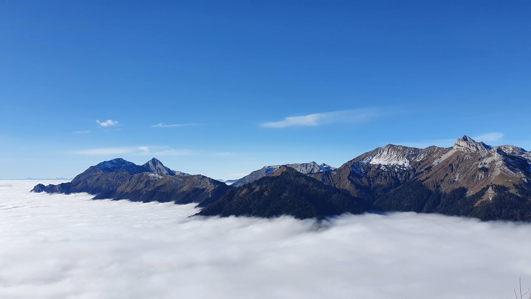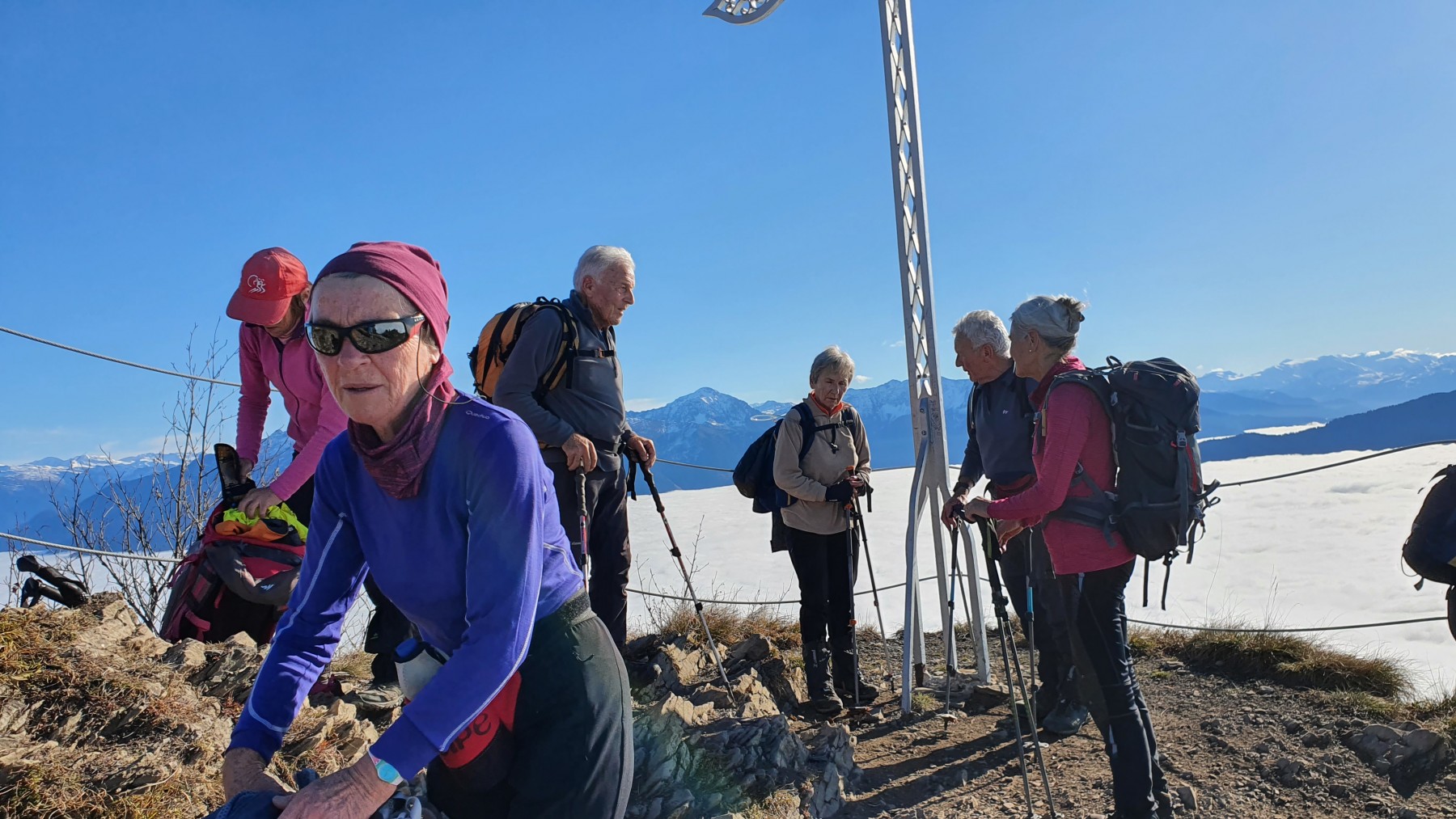 Ce mardi, 8 personnes étaient présentes pour ce beau circuit : montée à la Belle Etoile par la voie normale ( la Croix du Périllet ) et retour par le Chalet du Périllet. Le soleil a régné au dessus de 1400m et la vue sur les montagnes au dessus du brouillard était magnifique.