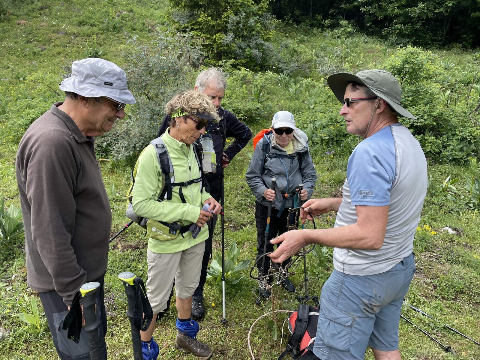 Le sommet atteint, une accalmie nous permet d’entrevoir le paysage, le casse-croûte est vite avalé avant la prochaine « saucée », on entame la descente, avec multiples glissades par la voie royale et c’est le retour aux voitures, où bien évidemment nous attend le soleil.