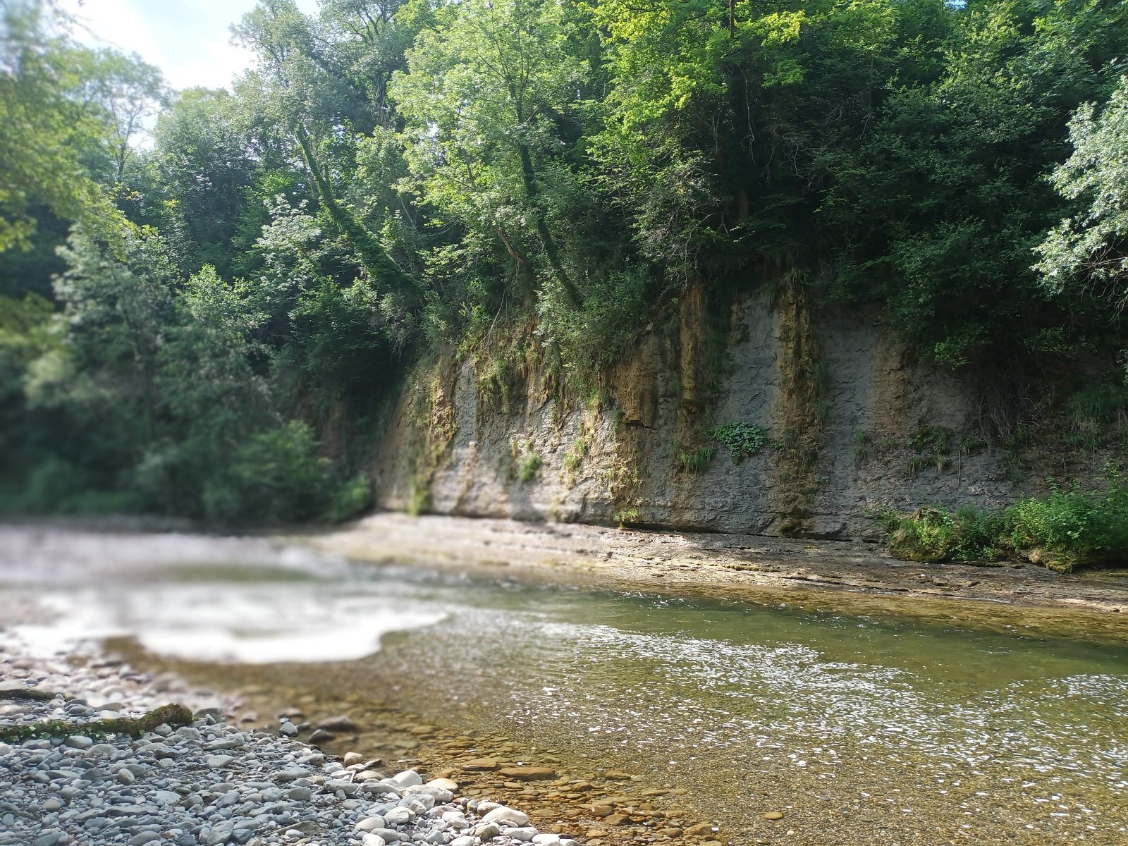 L’itinéraire s’étire à l’orée des bois à travers champs et longe la rivière du Chéran sur la commune de Boussy dont l’emblème est une petite pomme 🍎 du nom de “Croison.” Le plant aurait été ramené de Russie par un grenadier de Napoléon. La boucle s’étend sur 11 km et 370 m de dénivelé. La marche évolue dans ce cheminement aux paysages doux et variés à notre grande satisfaction. Bernadette
