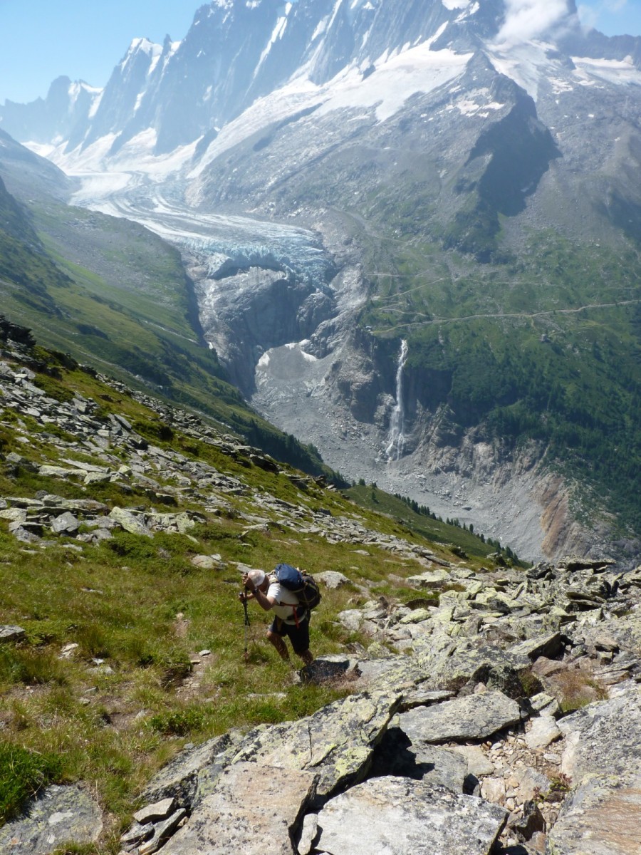 | J’ai proposé une randonnée en boucle au Bec de Lachat (2447m) depuis le parking du Tour après le chalet du Caf. Par un très beau sentier, large et bien entretenu, on progresse tranquillement en forêt jusqu’à l’abri Peclerey. Ensuite, le sentier se transforme en sente et disparait un peu dans la combe qui se dresse devant nous. Après quelques passages rocheux et aériens, on rejoint le point 2447m, nommé sur la carte Cairn qui nous accueillera pour la pause casse-croûte. Nous pouvons ainsi admirer le glacier d’Argentière ,entendre le bruit des séracs d’un côté, et de l’autre voir le glacier du Tour et le refuge Albert 1er. La vue dégagée nous offre un panorama fabuleux avec le barrage d’Emosson, le Buet, les Aiguilles Rouges, la vallée de Chamonix et d’Argentière, le Mont Blanc, le Dôme du Gouter, la face Nord de la Verte, ainsi que les faces Nord des Droites et des Courtes. Nous redescendons jusqu’à l’abri par le même itinéraire et faisons ensuite une boucle par le sentier du balcon Nord. La fréquentation assez faible de ce lieu a fini de me convaincre de revenir une autre fois. A bientôt sur d’autres chemins Pierre PREDESAC |