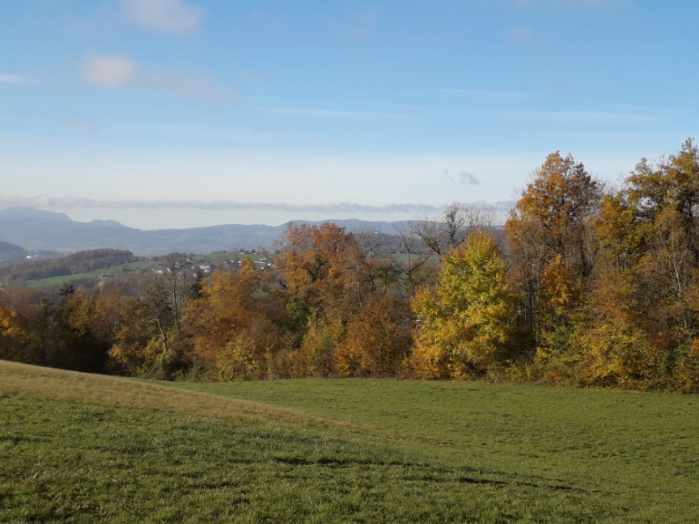 9 km de marche nordique, 220 m de dénivelé. Un quatuor de marcheuses. 4 animaux: bœufs, chevaux, chèvres et salamandre. Des couleurs d’automne. Le soleil apparu à Quintal. Pas de boue. Des participantes agréables et motivées .Et un taux d’encadrement exceptionnel . Michelle.