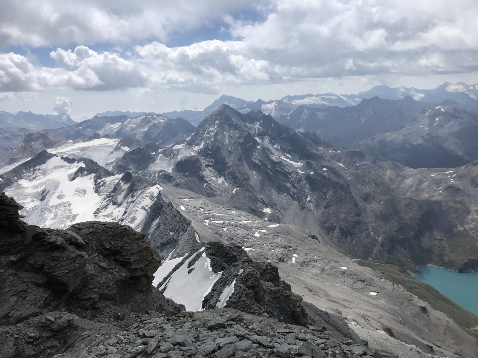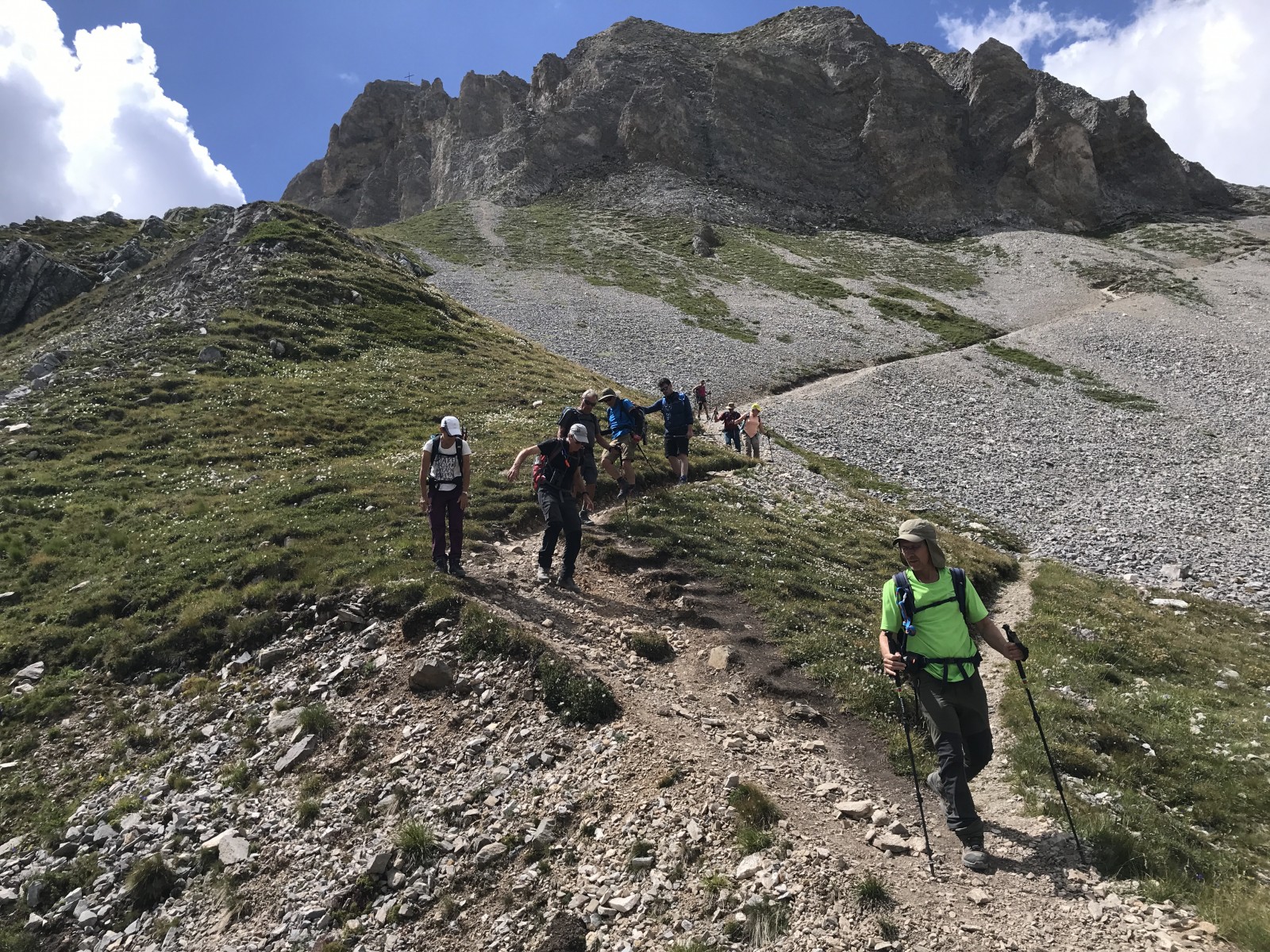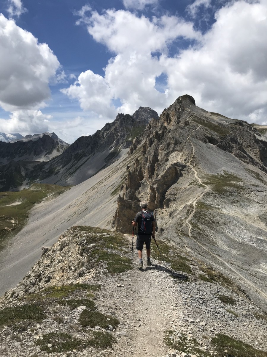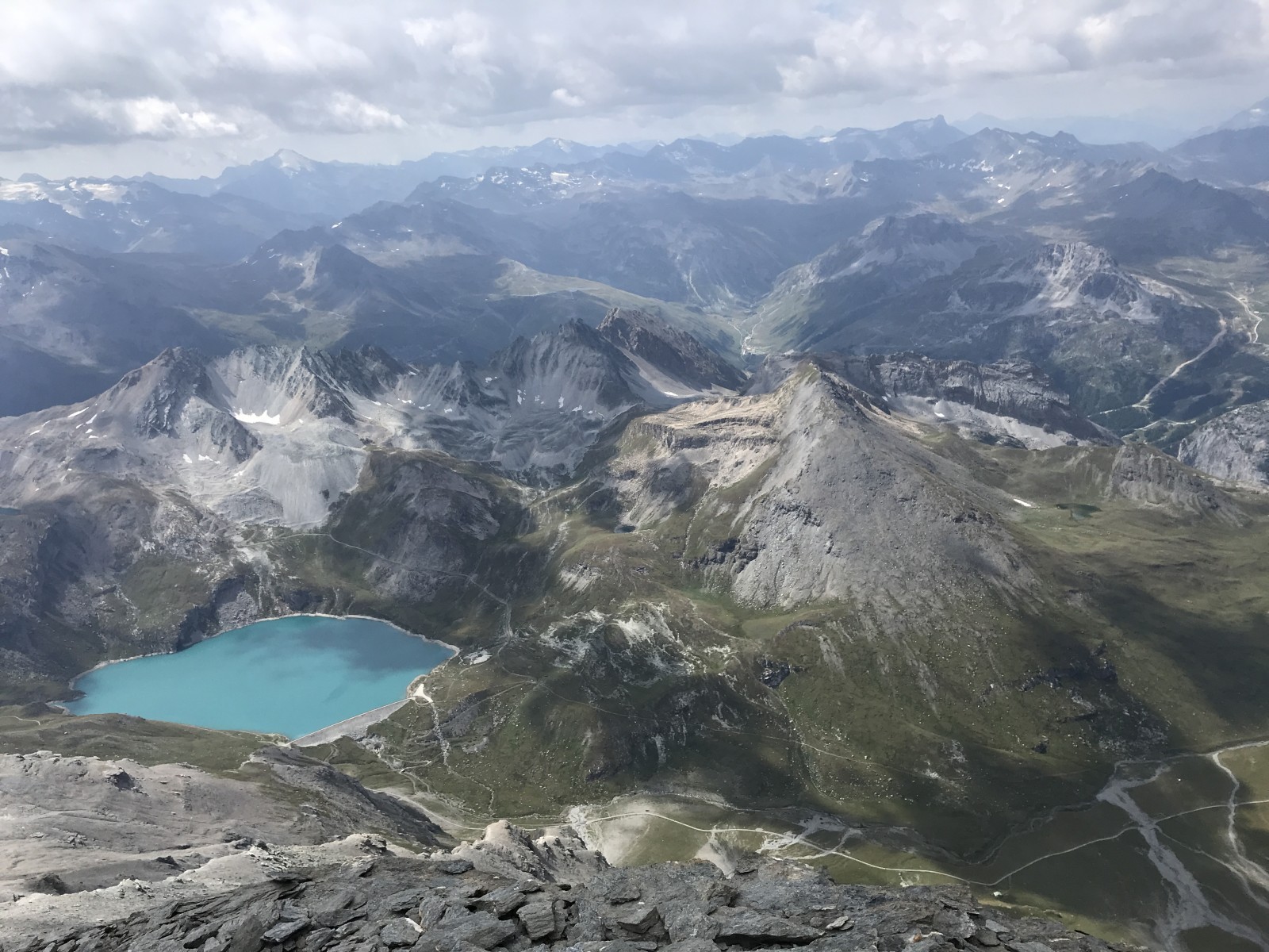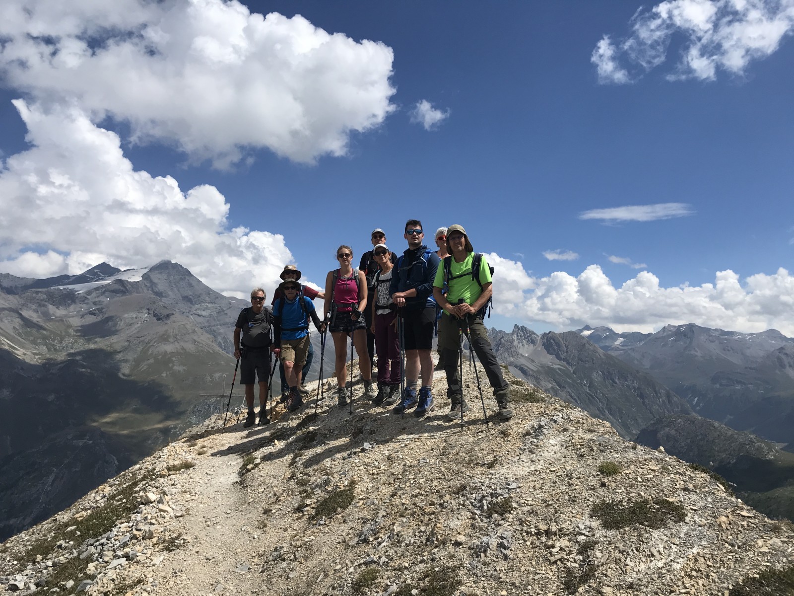 Départ au dessus du lac de Tignes, très beau paysage avec cette aiguille percée qui nous interpelle par sa géologie, petite mise en jambe avant la grande Sassière prévue le lendemain, petit verre de fin de randonnée au bord du lac avant de partir préparer notre bivouac au parking du Saut, une très belle averse nous surprend alors que nous installons les tentes, on se rappatrie dans les voitures en attendant que la pluie cesse. Enfin le beau temps revient, apéro, repas et nuit étoilée…