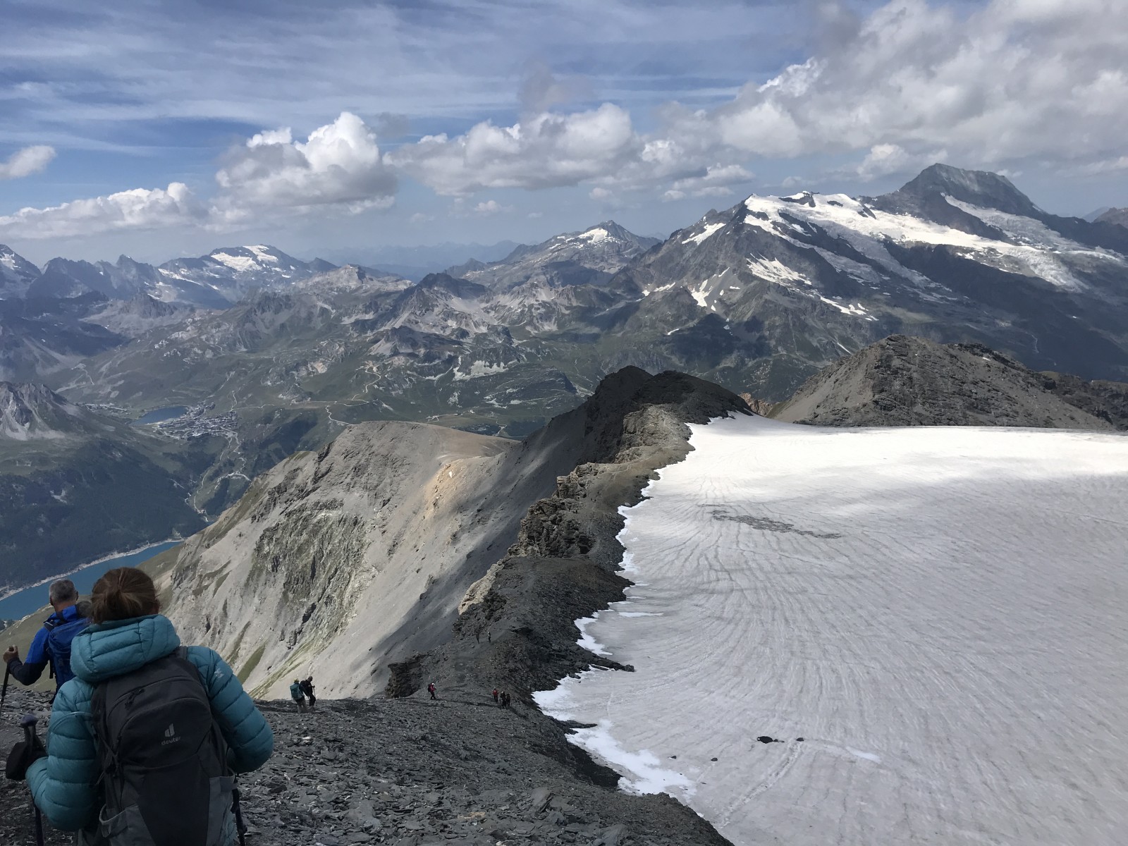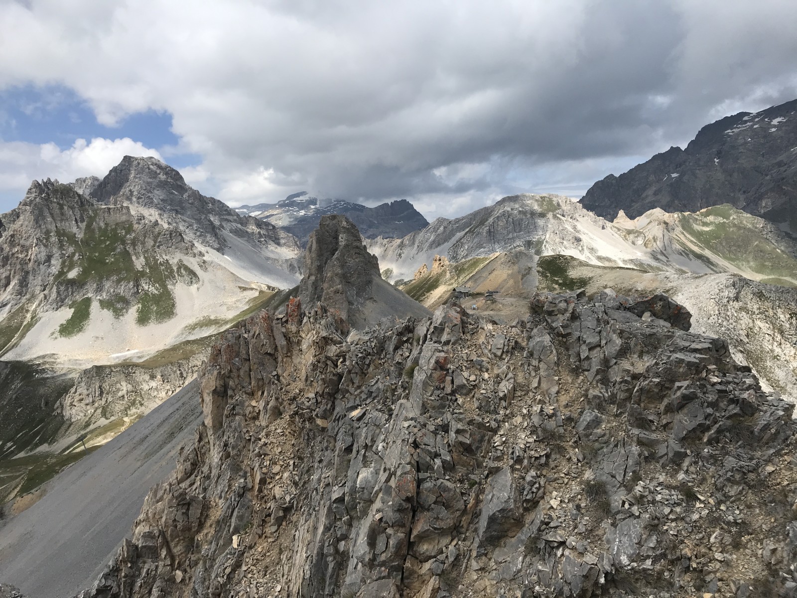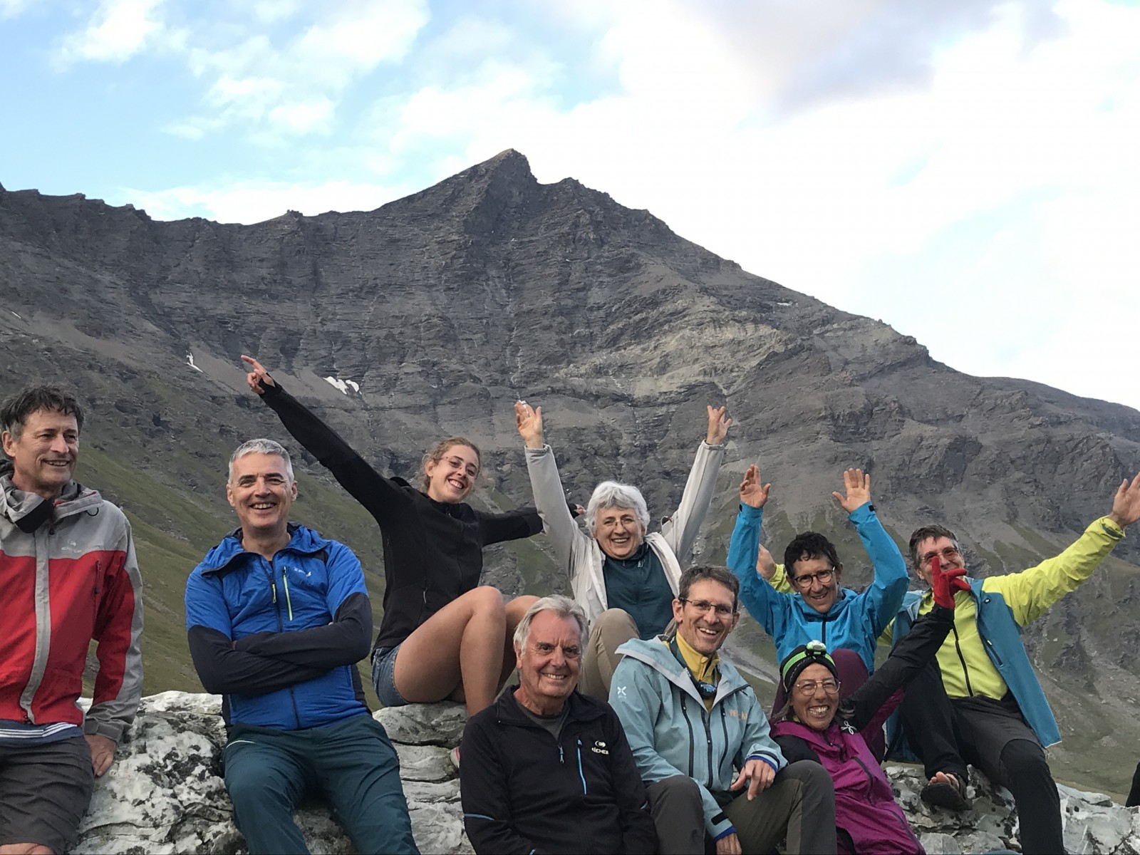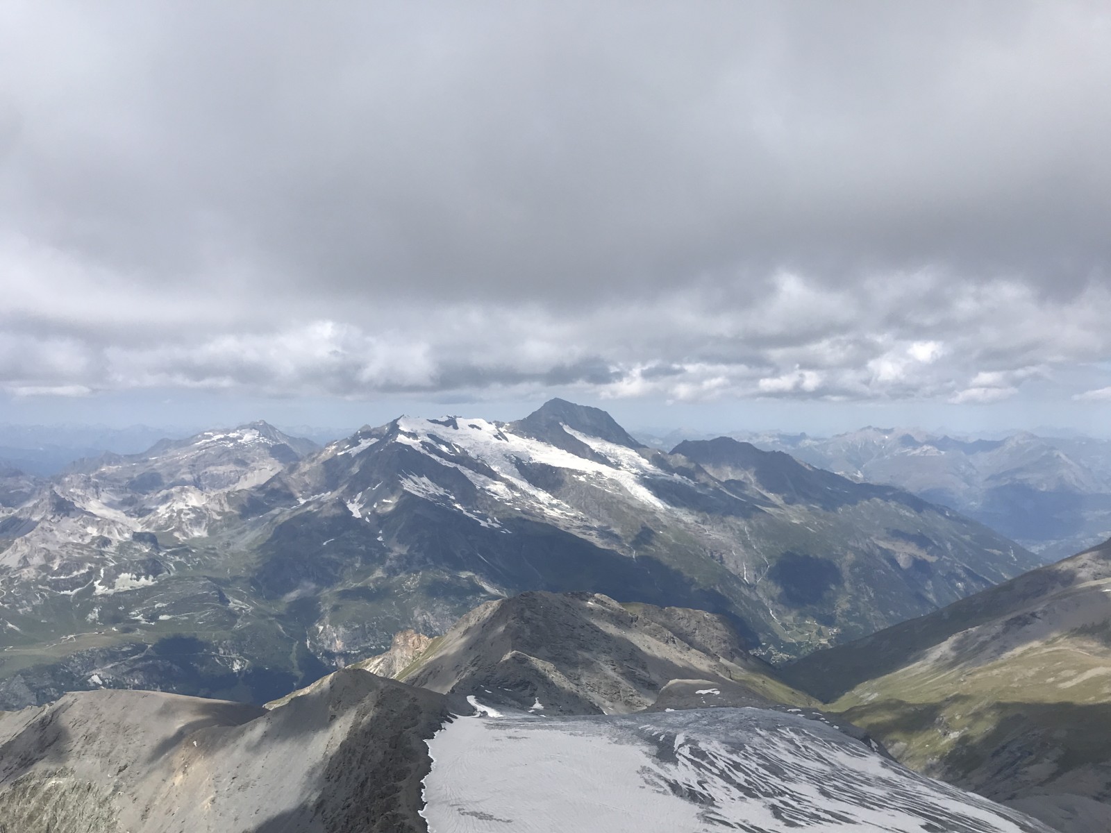 Départ au dessus du lac de Tignes, très beau paysage avec cette aiguille percée qui nous interpelle par sa géologie, petite mise en jambe avant la grande Sassière prévue le lendemain, petit verre de fin de randonnée au bord du lac avant de partir préparer notre bivouac au parking du Saut, une très belle averse nous surprend alors que nous installons les tentes, on se rappatrie dans les voitures en attendant que la pluie cesse. Enfin le beau temps revient, apéro, repas et nuit étoilée…