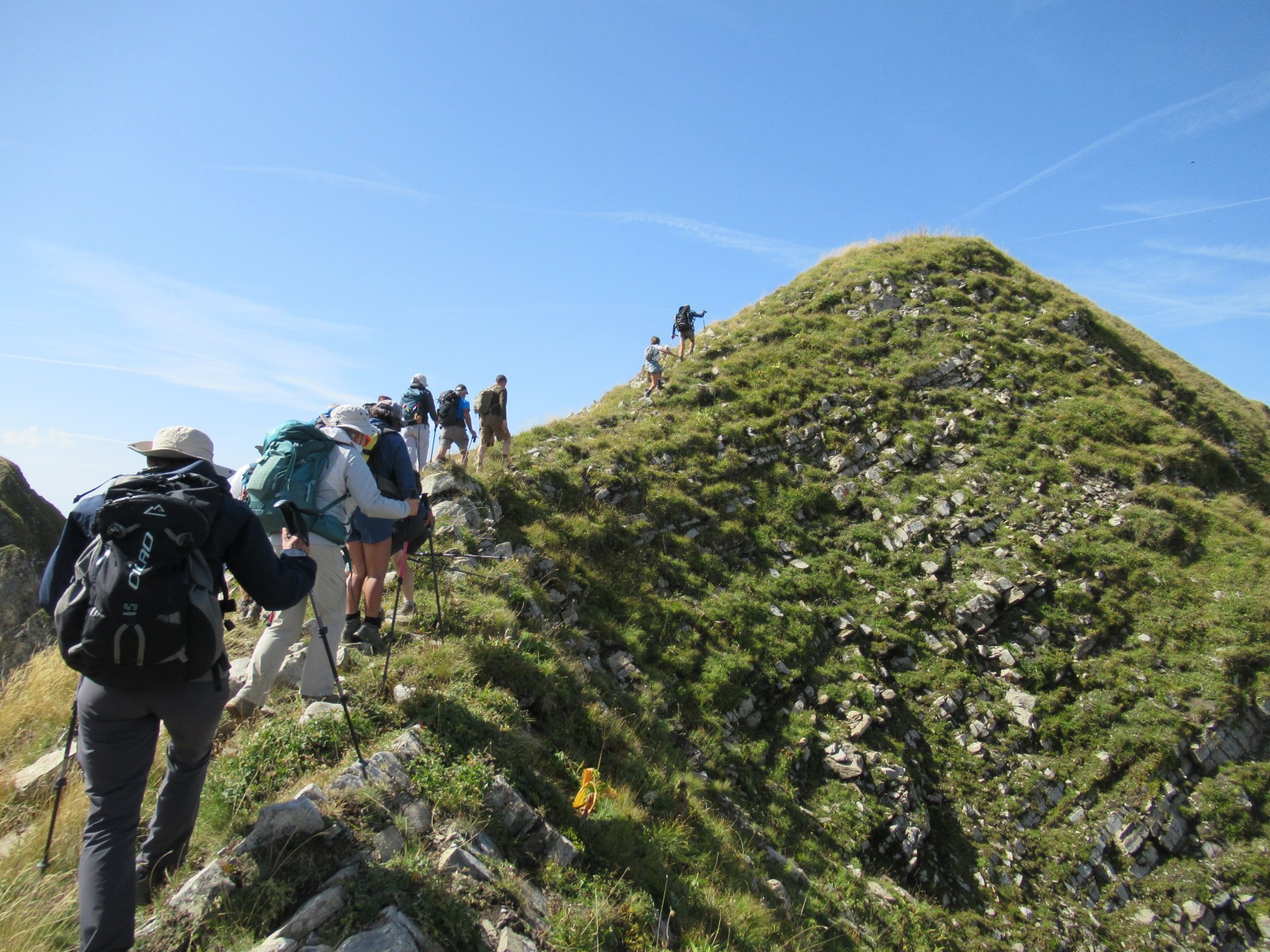 L’accès à la pointe d’Almet est impressionnante par sa pente mais le groupe l’a finalement atteint pour le pique-nique de midi : Bravo !