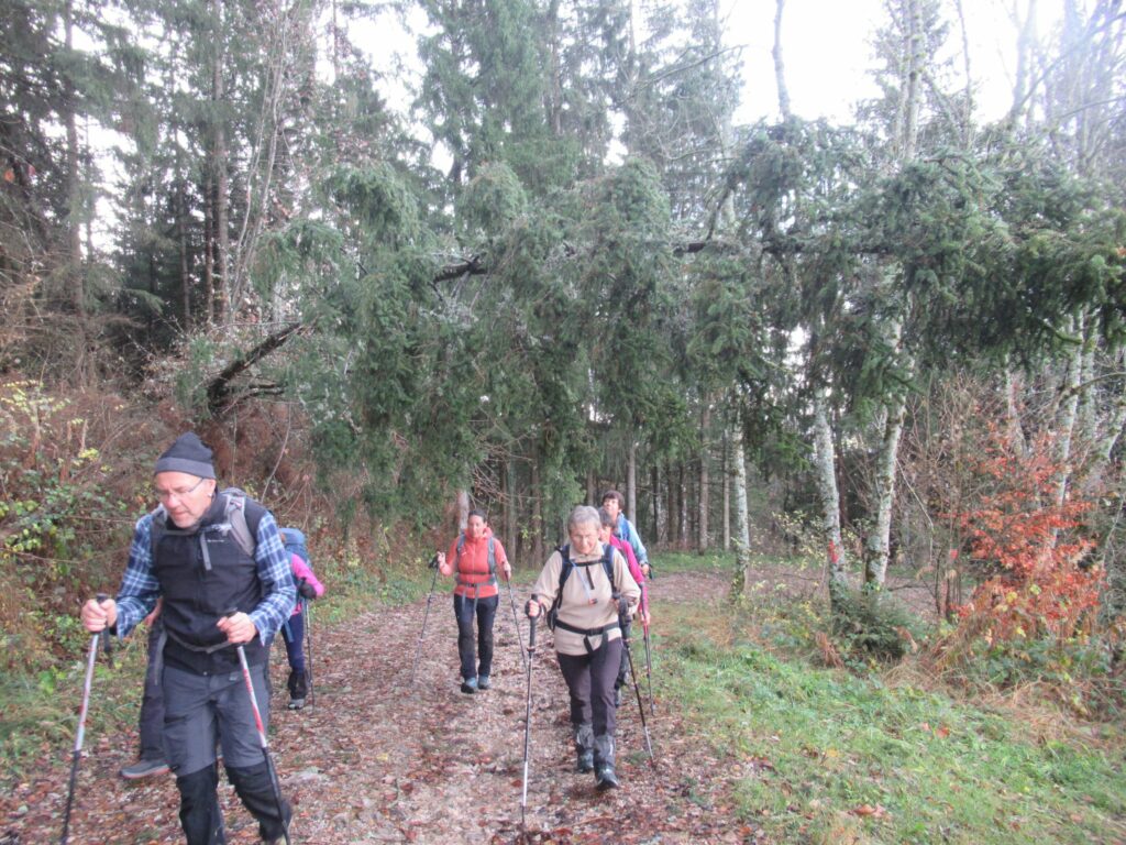 Ce mardi 26 Novembre, départ à 8 heures 45 de Saint Jorioz direction Paterier. Le sentier est très boueux et des arbres en travers du chemin. Pirabot, la tête, et le col de la cochette dernier petit raidillon pour arriver à la croix où nous avons pique-niquer. Nous avons fait la crête de la montagne d’Etreverne, le pas de la cheville, le Clay, les Rosières et retour au Parking.