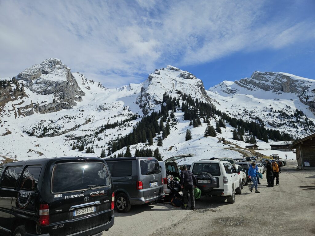 Encore du monde ce samedi matin au parking des Confins, beaucoup montent vers Grand Crêt.
