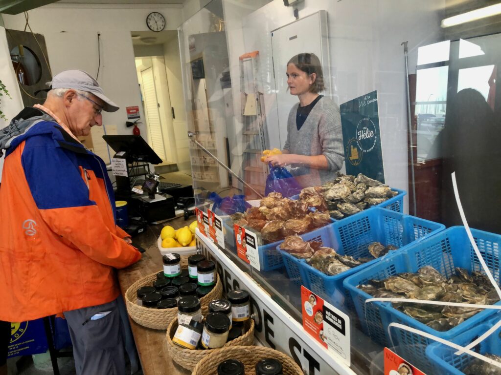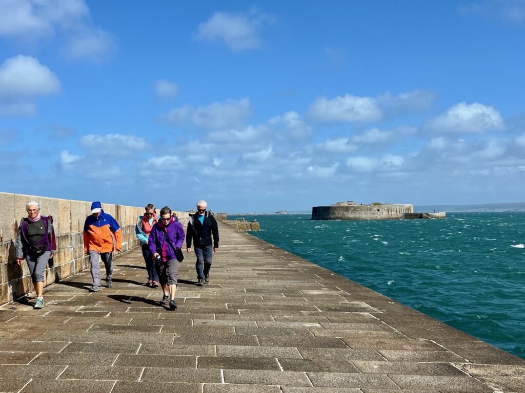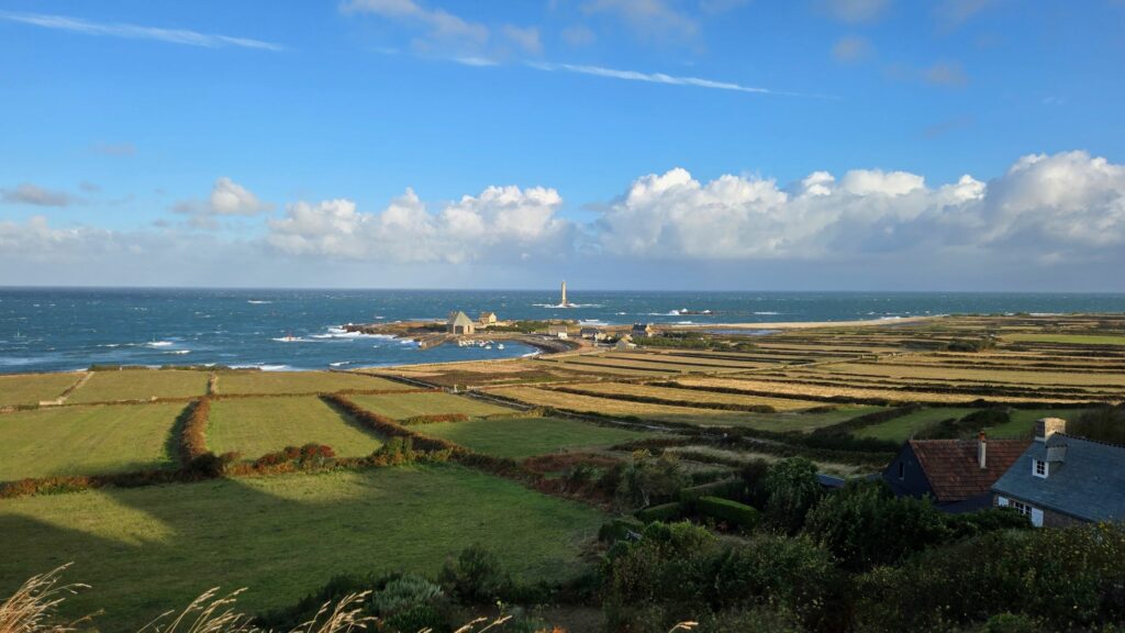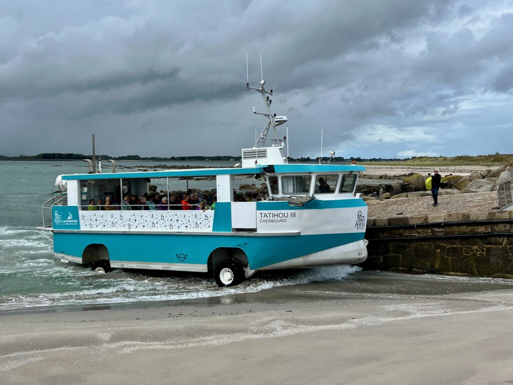 02/09/2025 – Temps couvert et « humide ». Départ pour Barfleur et son port. A partir d’une traboule, nous marcherons au Nord, le long de la cote, pour aller voir le Phare de Gatteville (2ème plus grand phare de France avec 75m de hauteur). Retour à Barfleur par le même chemin en passant par le pigeonnier du 16ème siècle et l’église. 11h, départ en minibus pour St Vaast la Hougue ou nous achetons notre pique-nique : huîtres de St Vaast et autres bricoles pour compléter…. A midi, nous embarquons dans un drôle de bateau qui nous emmène sur l’île de Tatihou. A l’arrivée, pique-nique « huîtres » dans les jardin du musée !!! Traversée de l’île (avec averses) pour aller jusqu’à la Tour Vauban que nous visitons avec aussi parcours dans le fort. Retour au Musée, avec visite et embarquement (sur le même bateau bizarre qu’à l’aller) pour St Vaast. Nous partons en minibus pour la Tour de la Hougue dont nous ferons le tour par le chemin du bord de mer (le plus souvent par un mur plus ou moins large, avec la mer à droite, le vent, (interdit aux poussettes !!!). De retour à St Vaast, nous prenons un pot sur le port et nous visitons la ville avec un arrêt obligatoire à l’épicerie Gosselin, une INSTITUTION locale !! Retour à Barfleur et dîner dans le même restaurant que la veille. Au total, nous aurons fait 13 km .. (inutile de préciser le dénivelé).