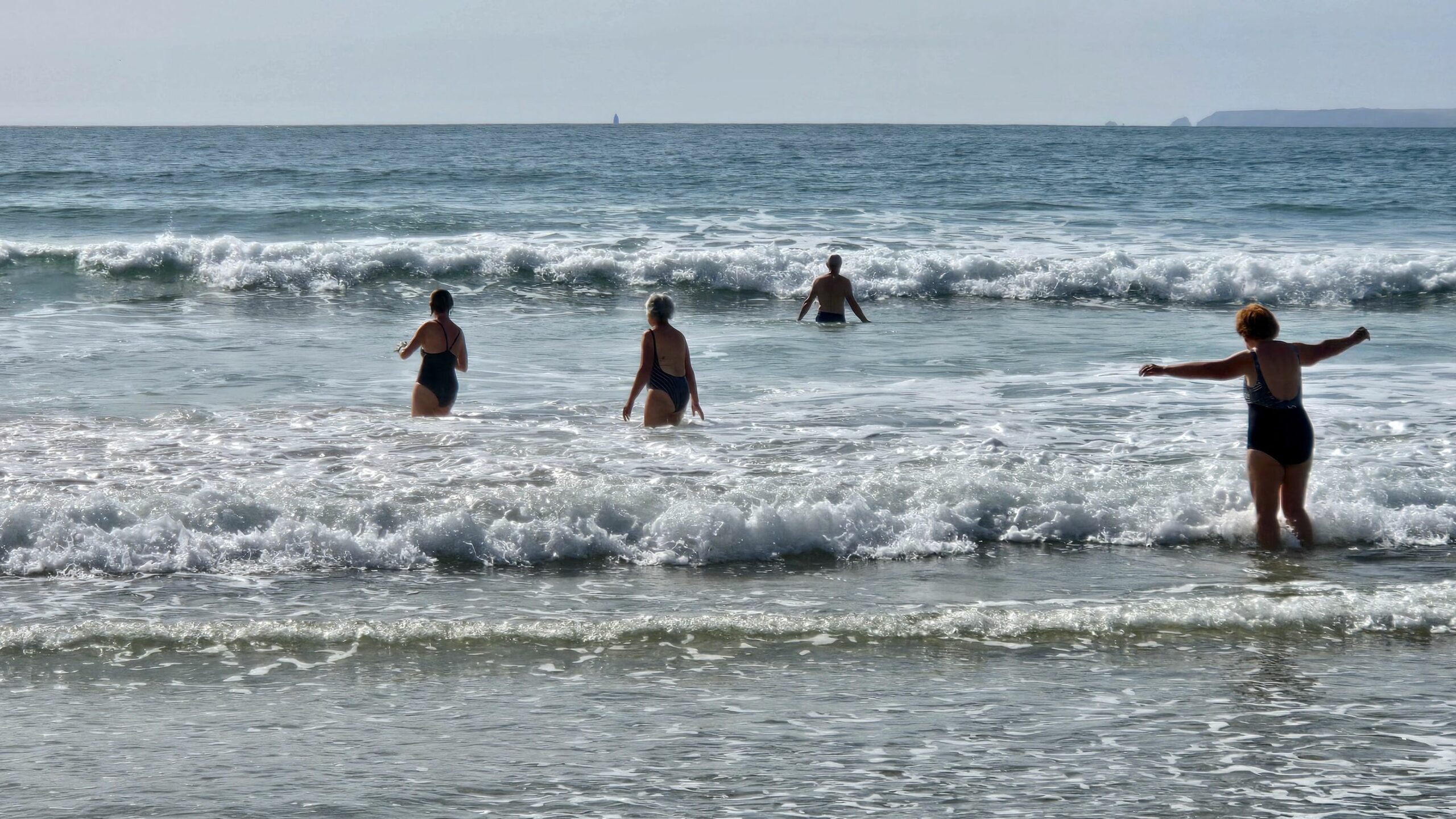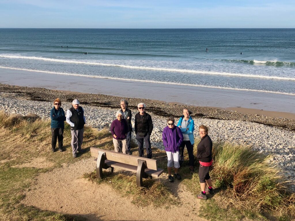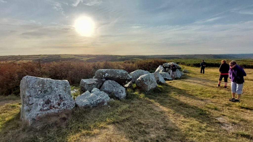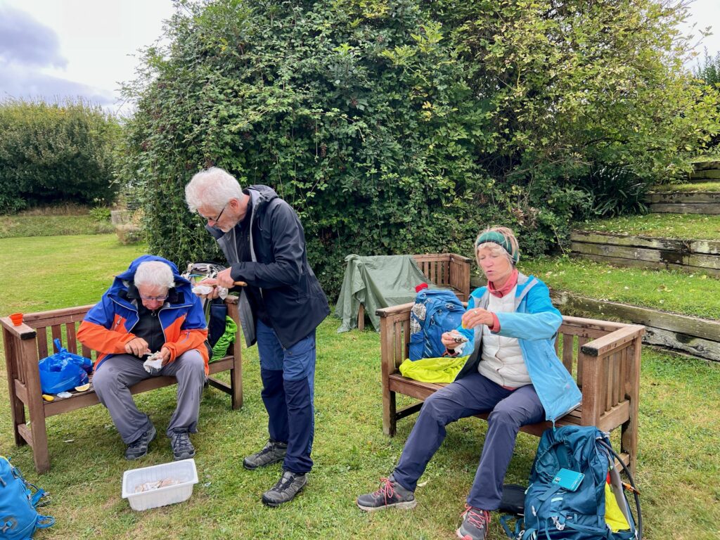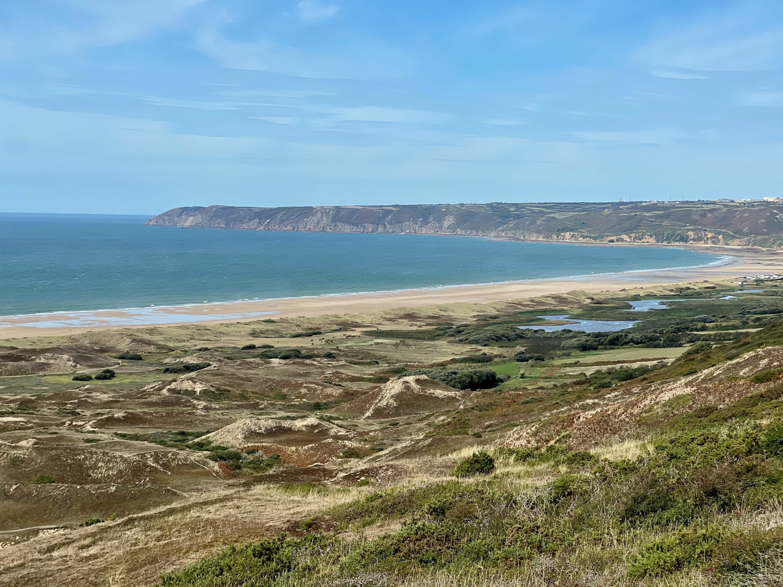 06/09/2025 – Temps correct avec encore du vent . Nous quittons Auderville en minibus pour aller voir Les Pierres Pouquelées (sépulture néolithique) et descendre au Jardin de Vauville que nous visitons (jardin botanique de la famille Pellerin de Turckheim ou sont rassemblées et bichonnées de nombreuses espèces de plante de l’hémisphère australe). Nous « posons » le minibus vers la plage : nous longeons la réserve naturelle de la Mare de Vauville, puis nous montons à travers les dunes jusqu’au Calvaire de Biville : pique-nique face à la mer avec vue sur les dunes, l’Anse de Vauville et le Cap de Flamanville. Brusque départ de Michel en courant pour une descente « écervelée » , un tout droit dans les dunes pour rejoindre le chemin qui nous ramène au minibus ( 7,5 km et 146 m de dénivelé). Récompense pour les baigneuses et un baigneur : un plongeon dans l’océan à marée basse sur la plage de Vauville. Départ pour le port de Dielette (bateaux pour Guernesey), le Cap de Flamanville, son dolmen « Pierre au Rey » et pose café au sémaphore transformé en bistrot. Il se fait tard : nous repartons pour Bayeux(et son Leclerc pour acheter les fromages normand) sans voir la Tapisserie (Musée fermé en prévision de sa restauration et son envoi à Londres….). Sur la route qui nous conduit à notre dernière étape – La Ferme de la Vicomté d’Auge à Clarbec – nous faisons un passage rapide au village normand typique de Beuvron en Auge. Le soir, repas à la ferme (normande) avec le propriétaire, un kir au cidre, et deux variétés de cidre.