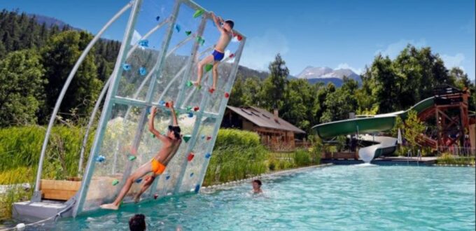 Une piscine écologique chauffée, avec mur d’escalade et toboggan aquatique nous permettront de bien finir les journées…