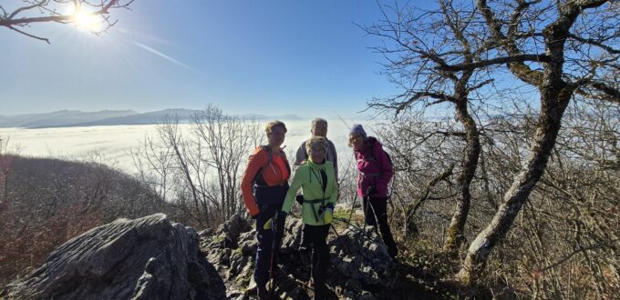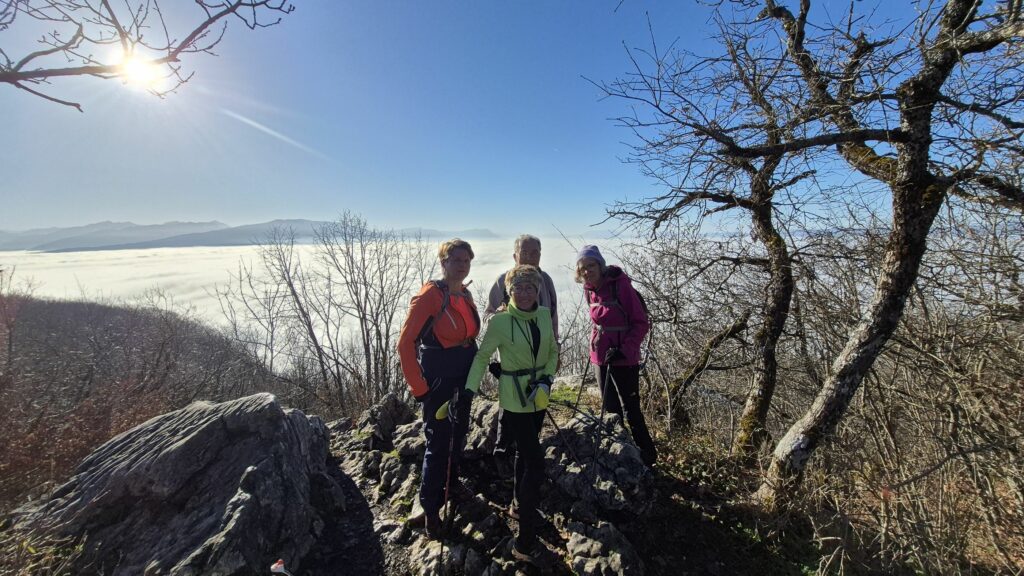 Marche nordique: Tête de la Mandallaz (900m)13 décembre 2025Ecrit par Dany Gautier Ce samedi 13 décembre, sortie tranquille de 12 km avec 500m d+ pour rencontrer le soleil !Une partie de rappel technique sur ce parcours technique !!!5 marcheurs causeurs Claude-(Dany)