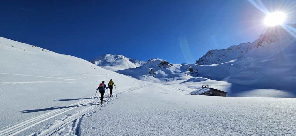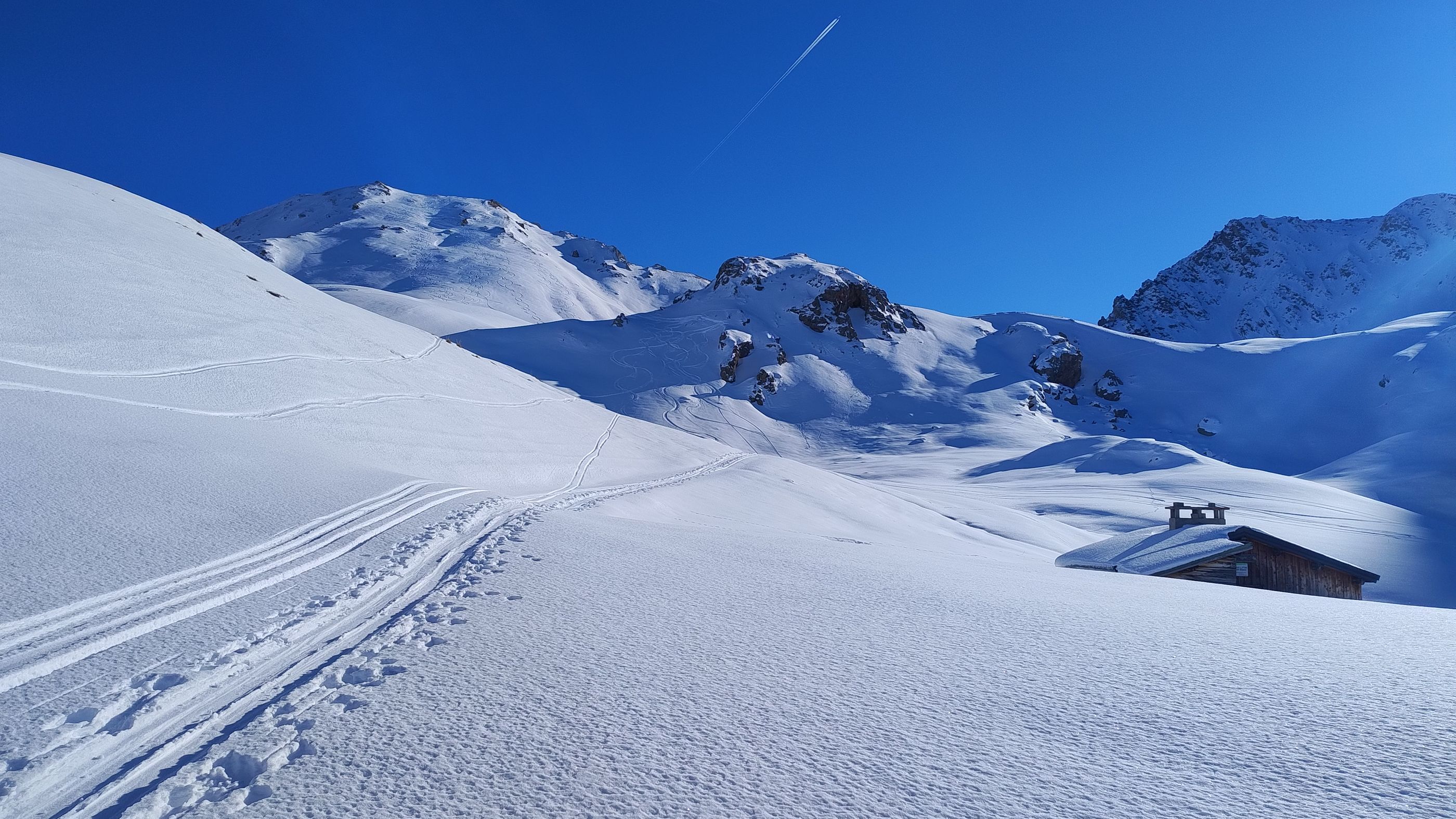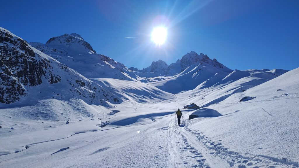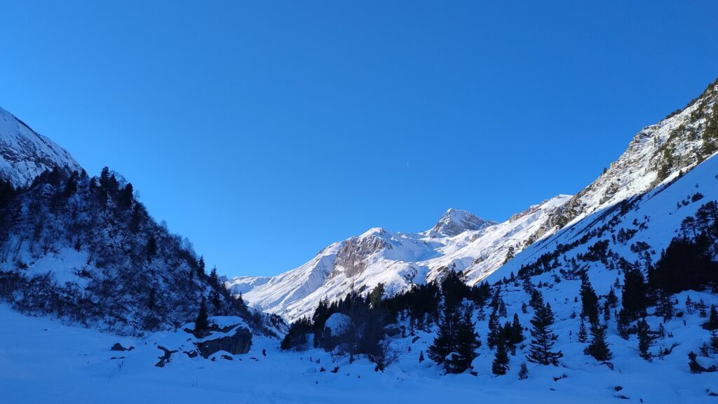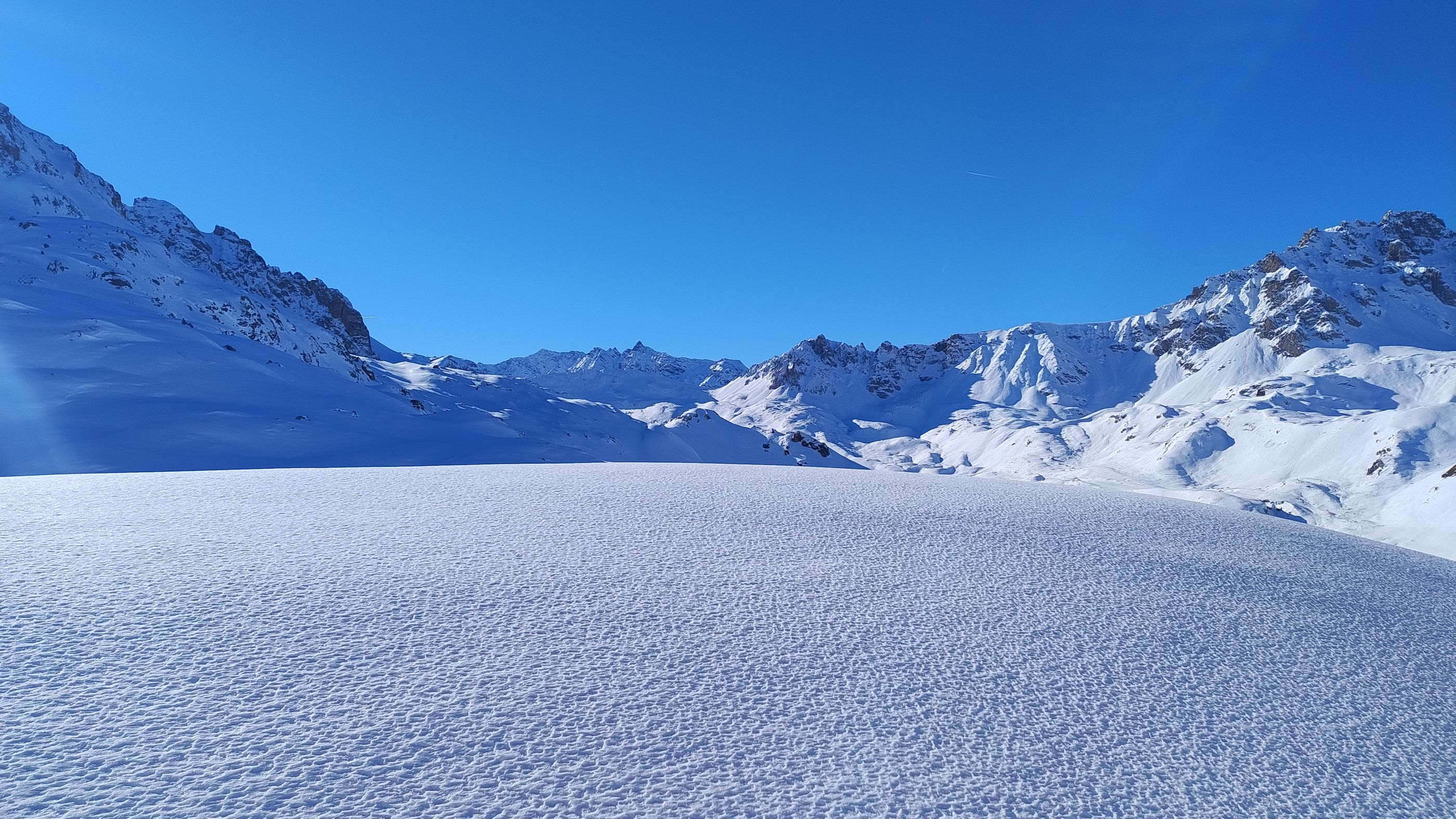 Peu de neige au Praz d’où nous avions prévu de débuter la randonnée et il y a déjà beaucoup de skieurs dans la station alors que la saison d’hiver commence à peine…alors on déclenche le plan B qui se révélera être bien meilleur que le plan A.