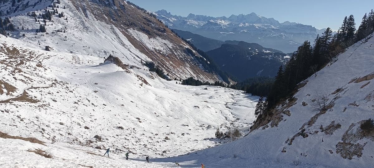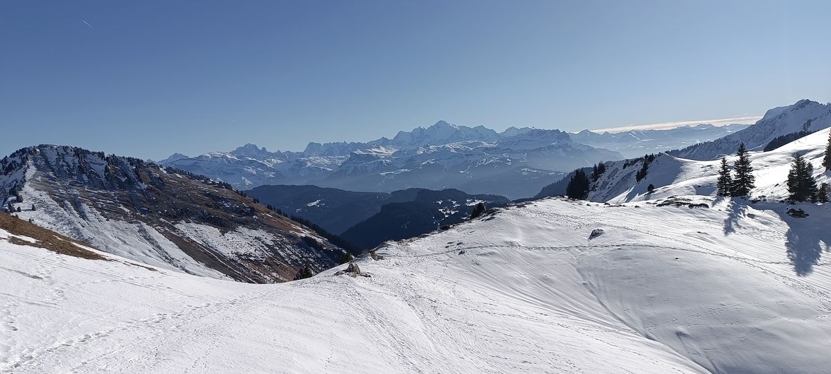 Ce dimanche 4 janvier, il fait -15 ° au départ de Sommand encore dans l’ombre à 9h. Solène s’arrête très vite suite à un claquage du mollet, et devra se consoler avec une fondue. Le soleil vient nous réchauffer après le col de la Ramasse, mais la neige restera très dure toute la journée, nécessitant l’utilisation des couteaux. L’arrivée au col de Vésinaz se fera à pied sur quelques mètres en raison de sa raideur. Picnic sur l’herbe au col sans vent, puis descente partie en dérapages, avant de rejoindre les pistes, et la chaleur du bistrot.