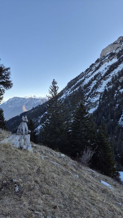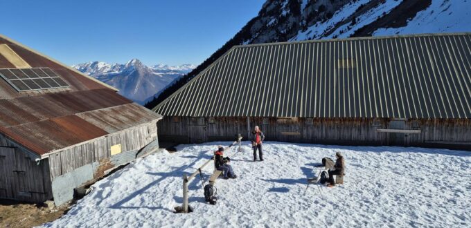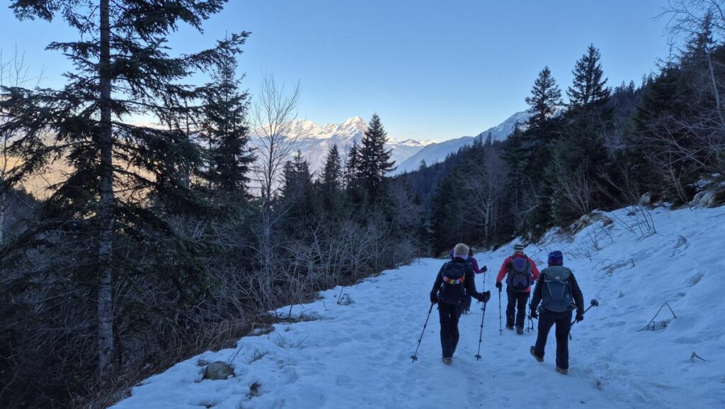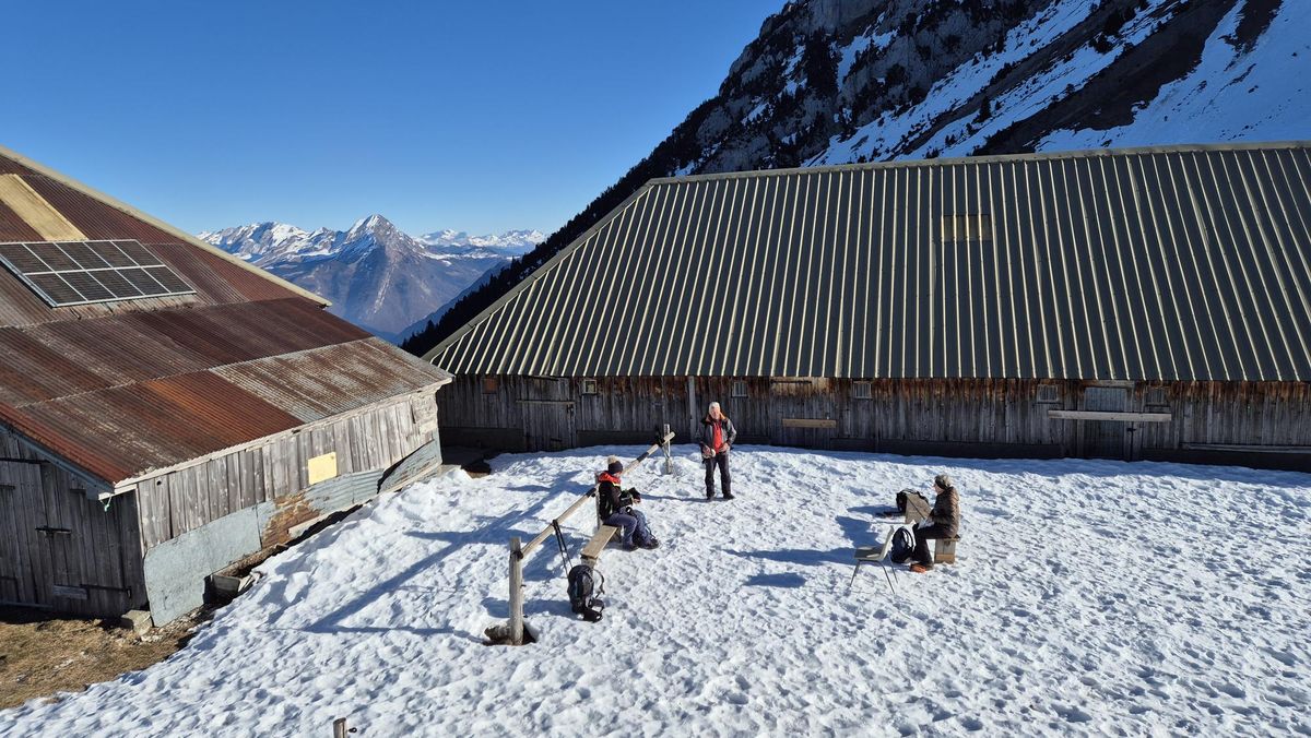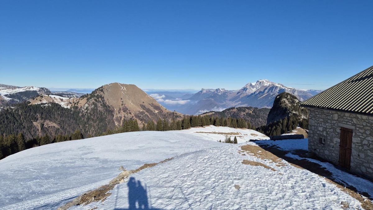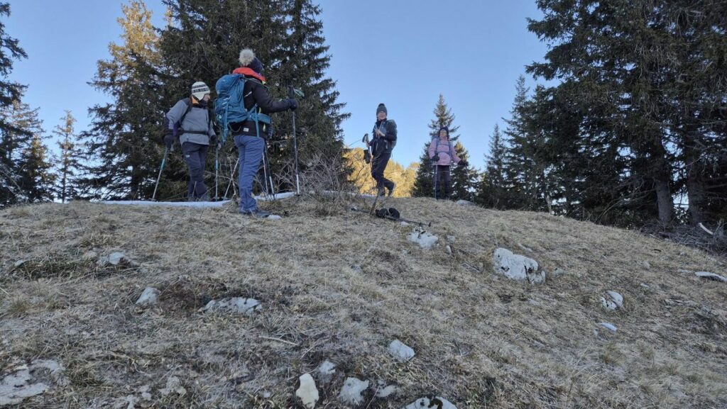 Mardi 6 janvier: Moins 12° au départ à 9h30 mais un grand ciel bleu et le soleil à 150 m du sommet, terrain très gelé. Nous avons piqueniqué sous un beau soleil, tout le monde a mis les crampons pour redescendre. Très belle journée avec vue magnifique.