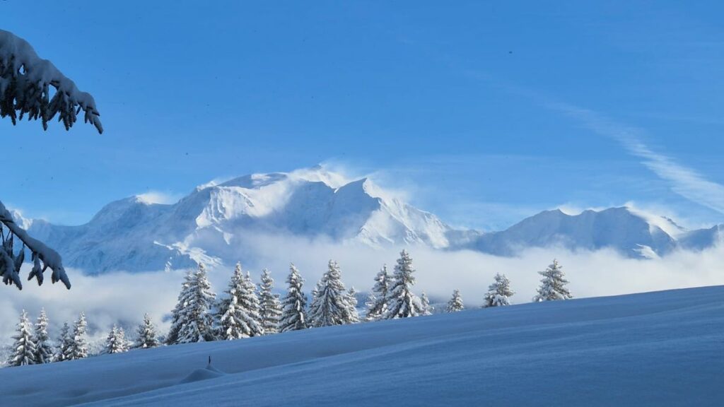 Magnifiques panoramas sur les massifs des Aravis, du Mont-Blanc et du Faucigny. Descentes par les pistes.