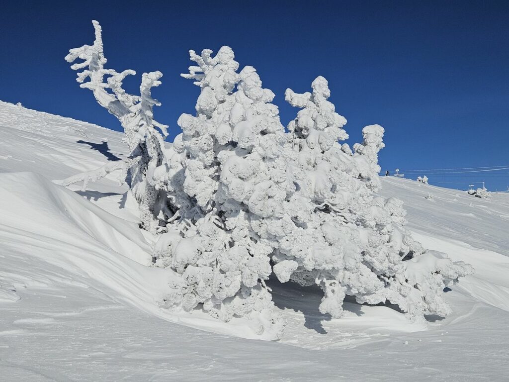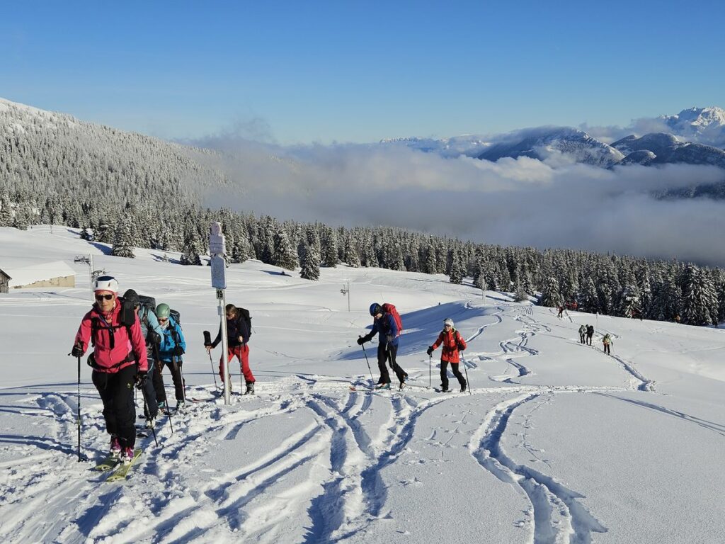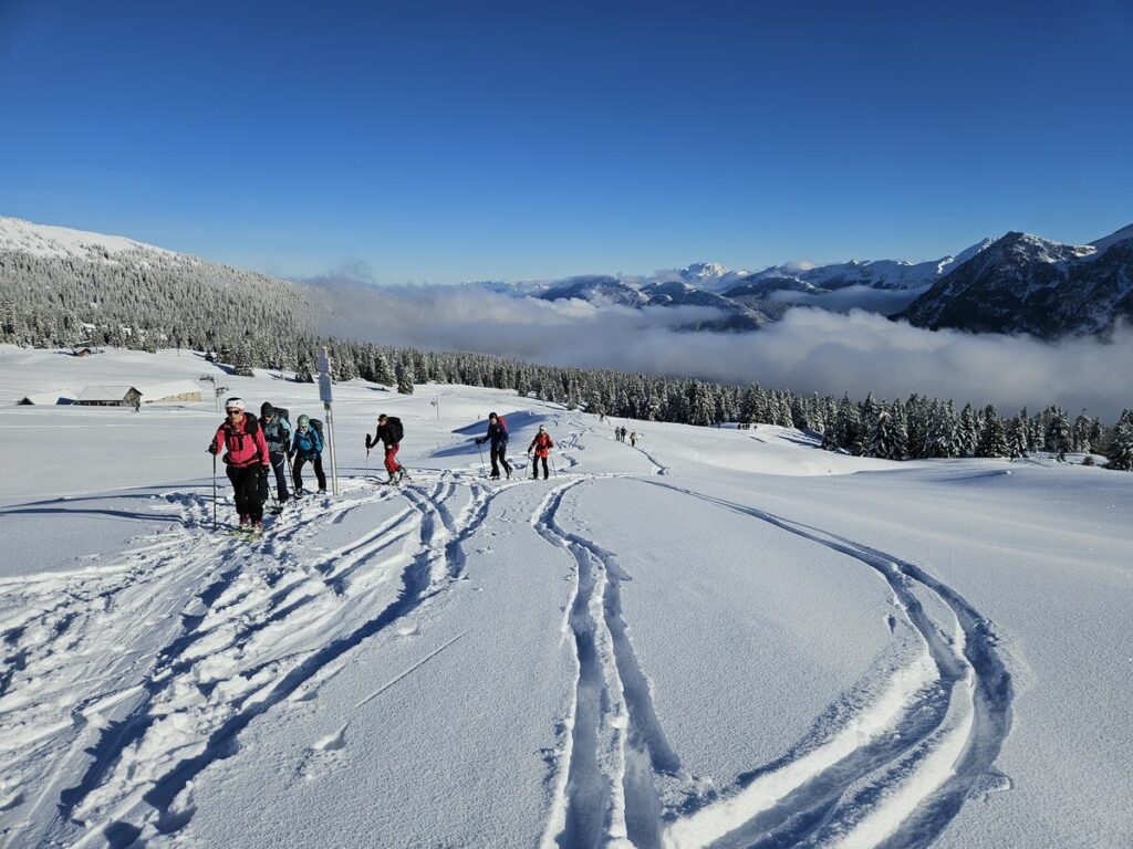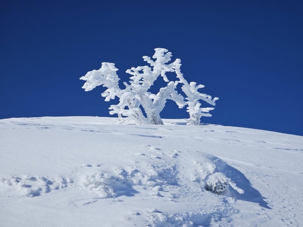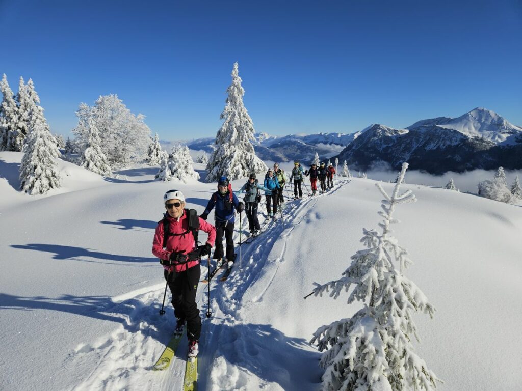 Début du parcours dans la forêt dans une ambiance feutrée. En sortie de forêt nous découvrons un paysage immaculé avec un panorama exceptionnel.
