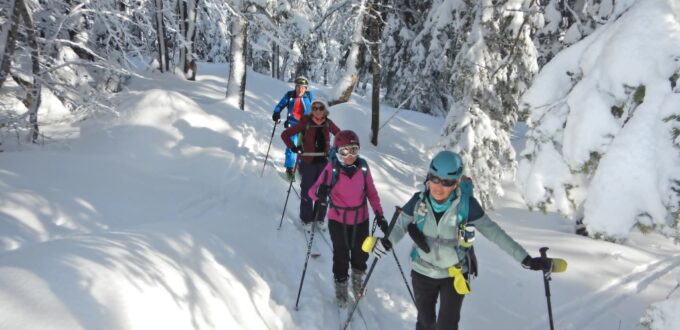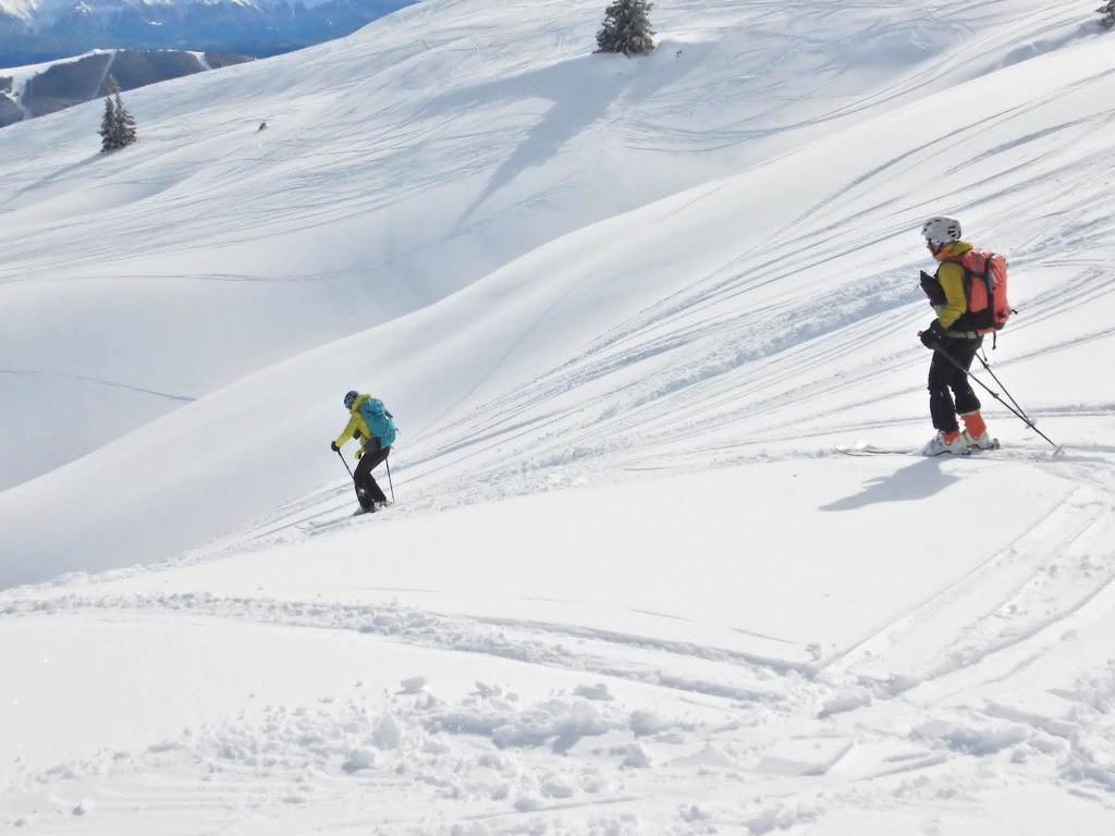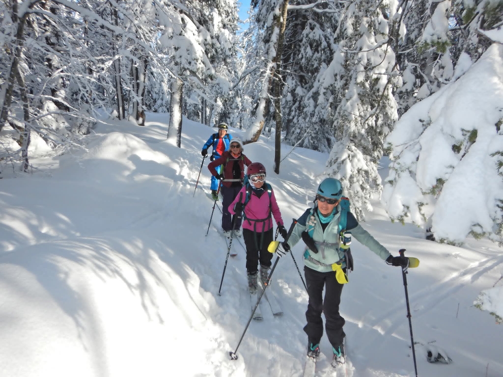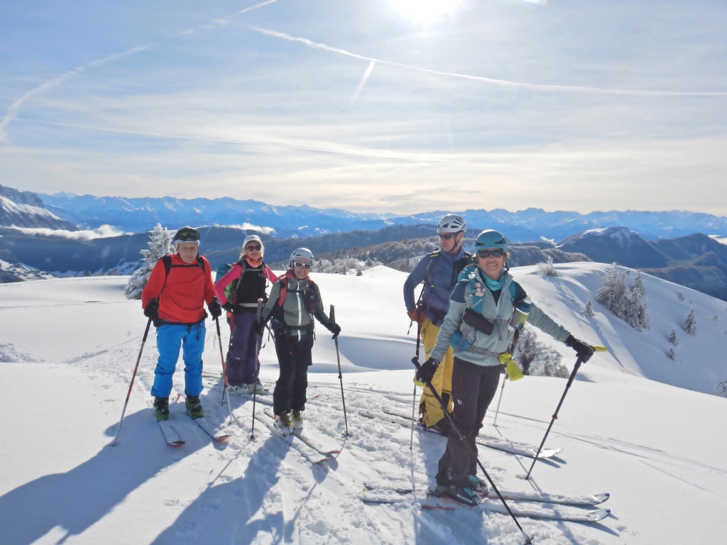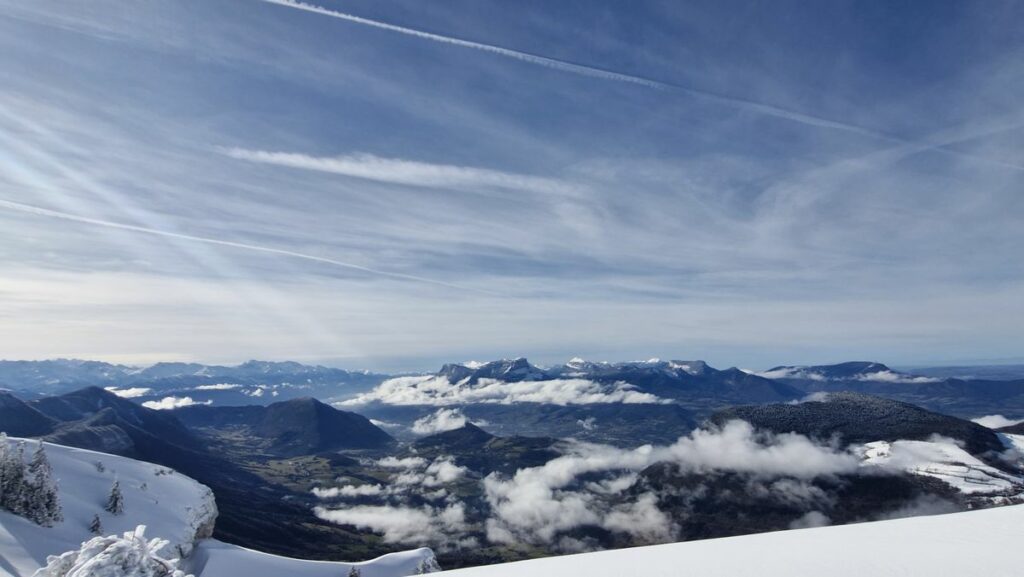 Montée très tranquille par les Crêtes, admiration des à-pics aux allures de haute montagne, pause casse-croûte au “sommet”, et descente par les pistes rouge et bleue avec des incursions dans les inter-pistes en poudreuse. Arrêt obligatoire à la chocolaterie de Lescheraines respecté.