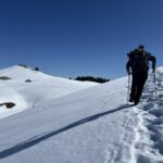 Beaucoup d’impressionnantes coulées sur les versants sud. La neige portait bien, la montée fût agréable. Petite frayeur lors d’une grande traversée sous le Grand Plan, quand Annick a fait une glissade sur une trentaine de mètres. Ce fut l’occasion pour Pascal de rappeler l’importance de la journée de formation « Ecole de neige » dans laquelle on apprend à faire un arrêt de glissade.