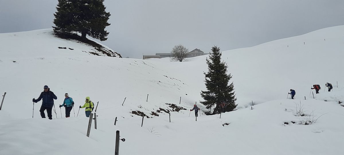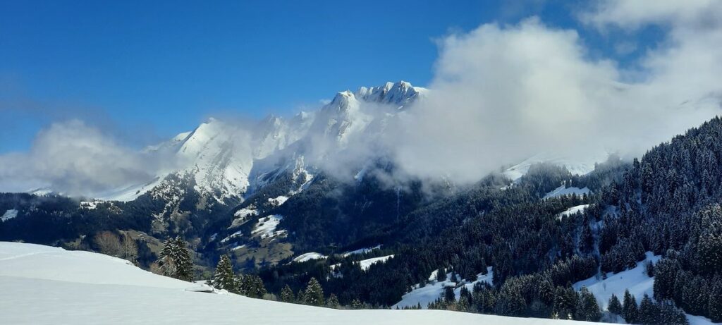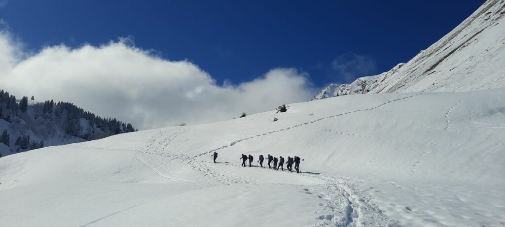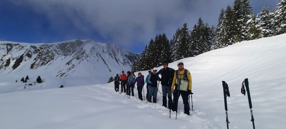 Jeudi 5 mars: belle sortie à l’écart des grandes affluences, nous sommes partis du parking Les Croizats à Lélex vers 9h30 et avons rejoint le sommet du Grand Crêt vers midi. Nous avons décidé de continuer jusqu’au Crêt de la Neige que nous atteignions vers 12h40 et déjeunerons.