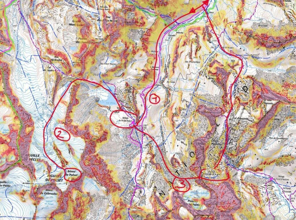 2 journées avec une météo magnifique, qui nous ont permis de parcourir le vallon menant à Péclet Polset, et le dôme de Polset. Nous avons pu pique-niquer au sommet du dôme :).