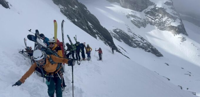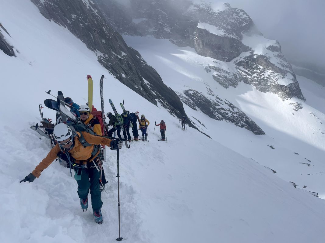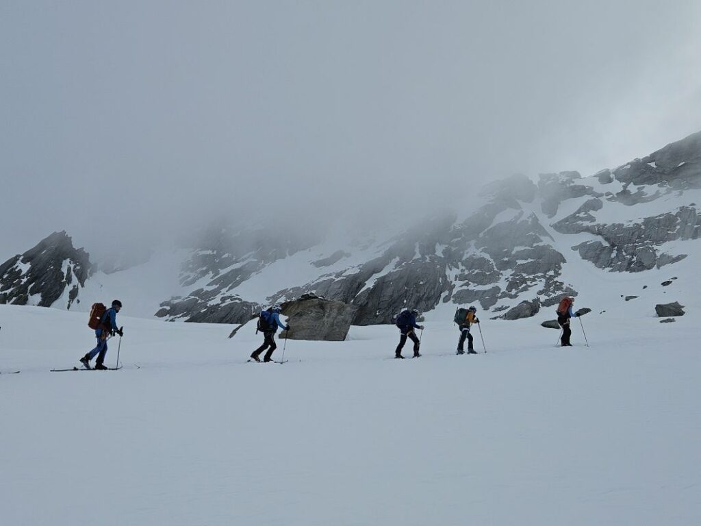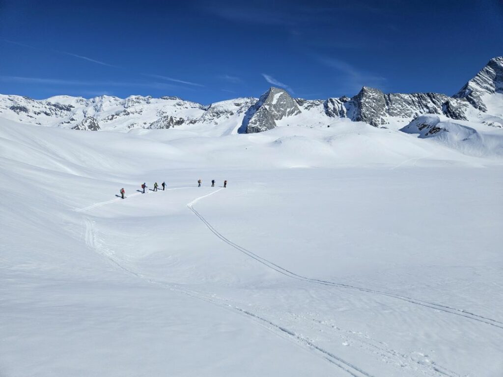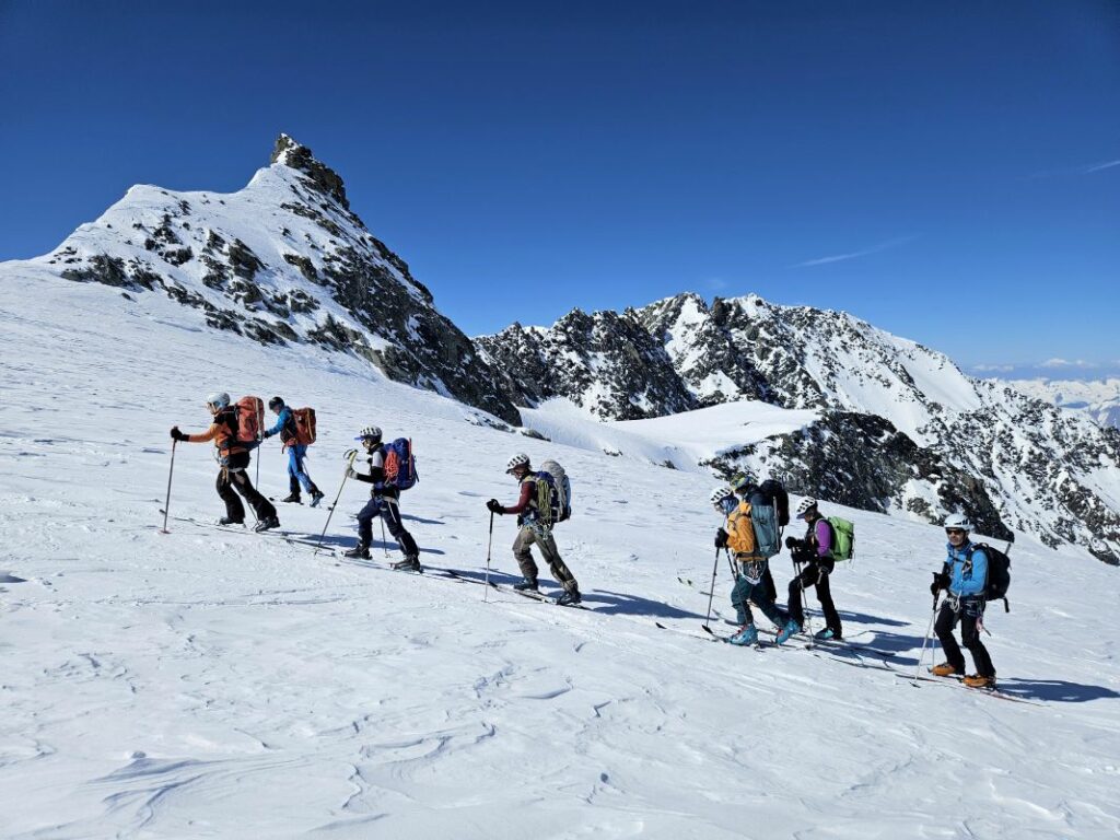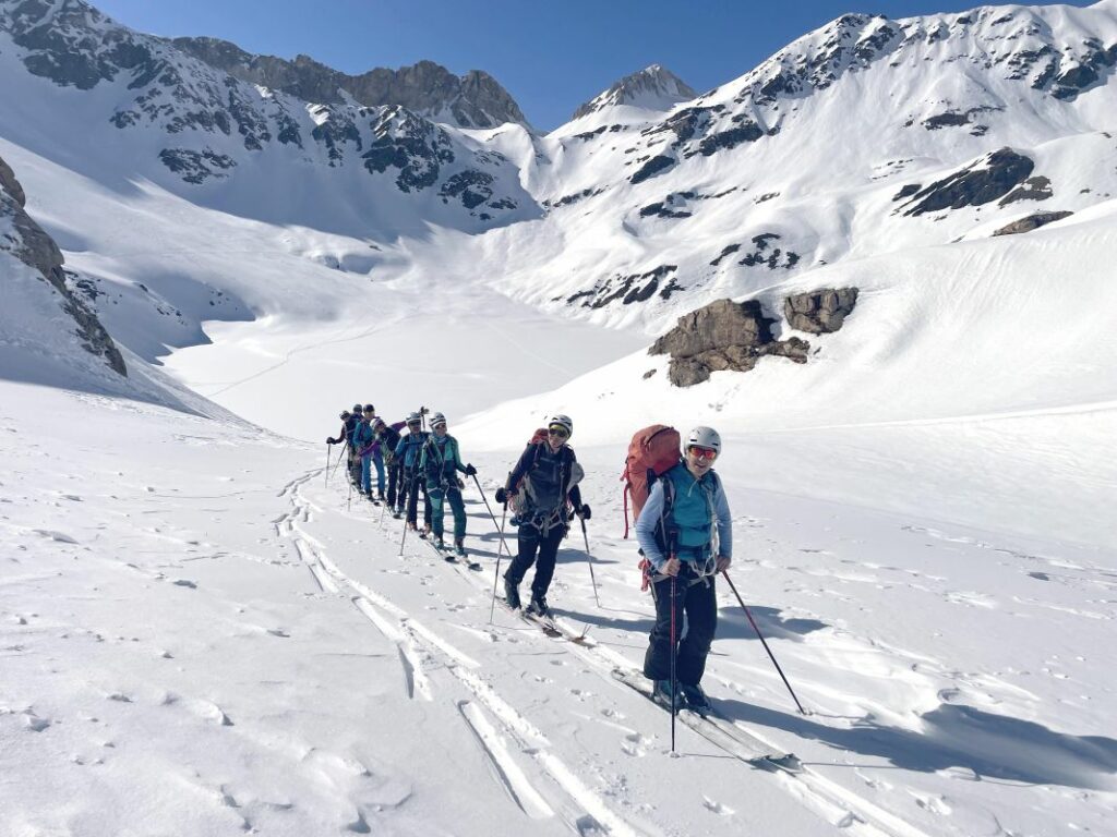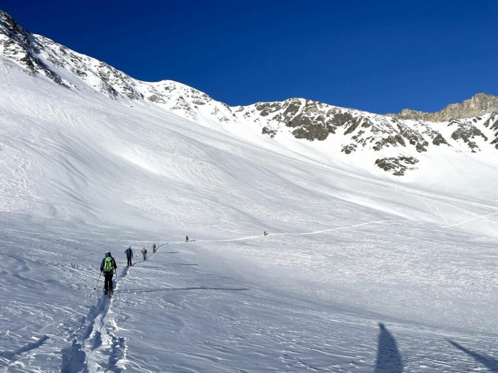 Le 3eme jour, retour sur Pralognan par la brèche de la Croix de la Rue, qui se gravit en piolet crampon et donne accès au versant Maurienne. Au col d’Aussois nous entamons la descente vers Ritord. Un aigle royal nous gratifie de sa visite.