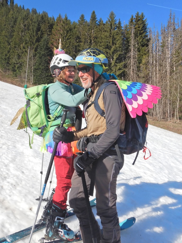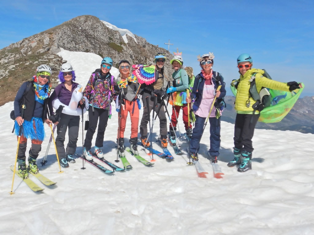 Ça sent un peu la fin de la saison ( même si Dominique n’a pas dit son dernier mot…avis aux amateurs) , on avait envie de fêter ça dans le rire et la bonne humeur comme d’hab avec quelques accessoires en plus ! Une belle neige de printemps sous un magnifique soleil Notre bonne humeur a été communicative….un monsieur rencontré au sommet a très envie de rejoindre le CAF Meythet. Merci encore à Dom et à tout le groupe pour cette belle journée