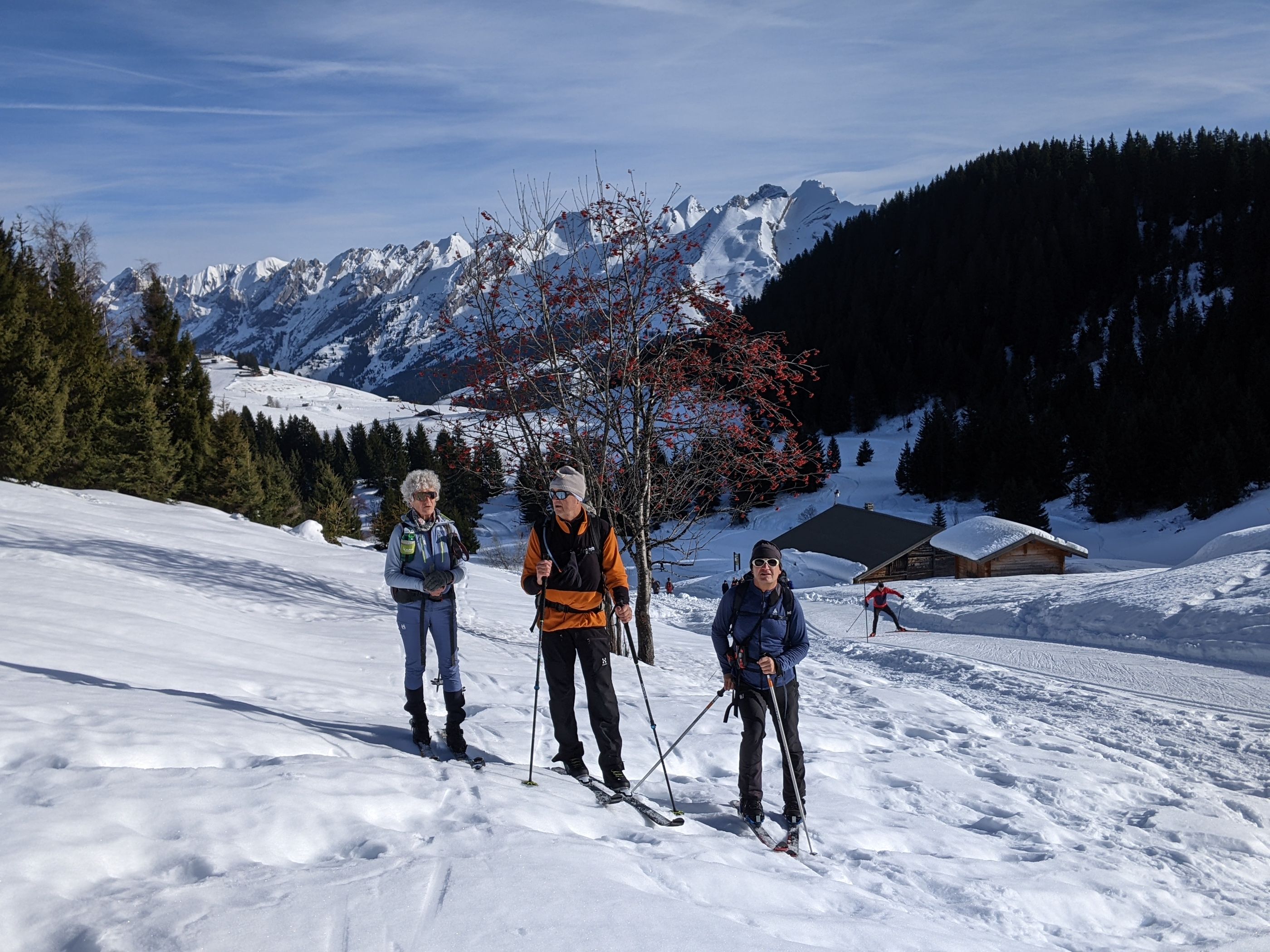 Jeudi 11 décembre: Nous étions quatre au départ de la Croix Fry pour le tour de la pointe et du plateau de Beauregard. Nous avons eu le matin du soleil, une neige très difficile à skier et l’après-midi, après pause à Colomban, une neige meilleure mais sans soleil.Nous avons fait 9km et 330mD+ Didier