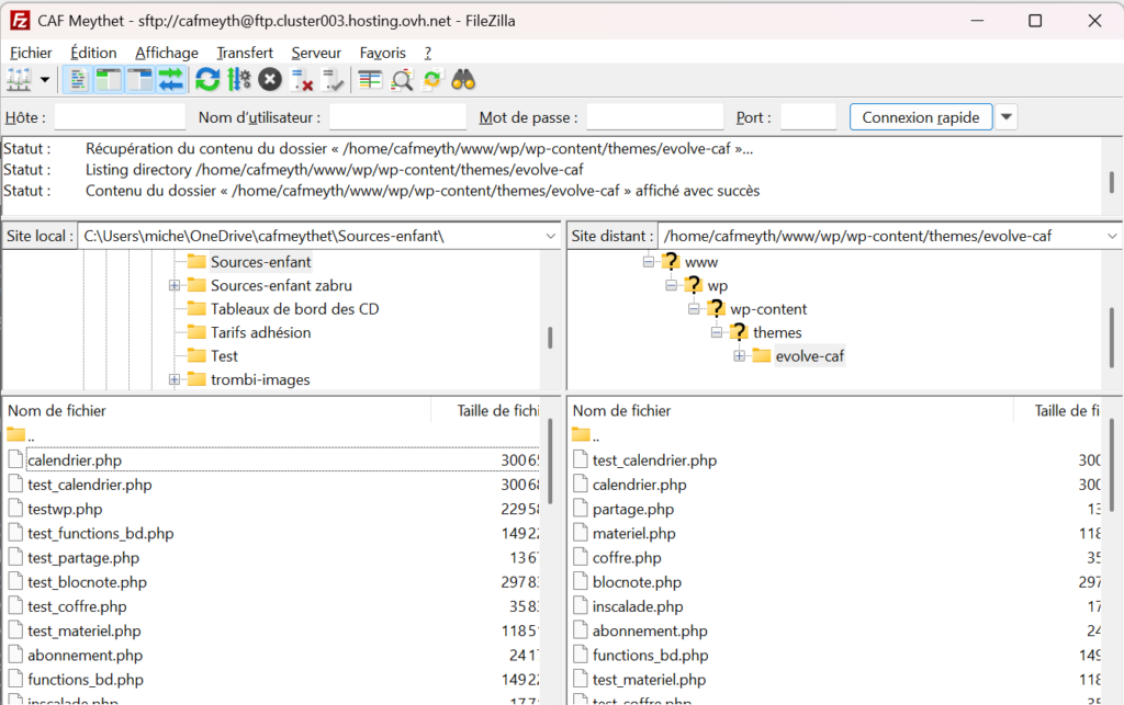 Un thème WordPress est un ensemble de fichier qui détermine l’apparence et le fonctionnement d’un site. Le CAF Meythet utilise le thème evolve et donc le dossier evolve