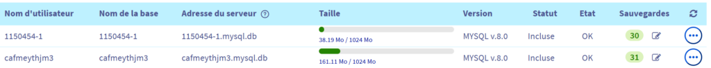 En plus de la base de données propre à WordPress, une seconde base de données MySQL est utilisées par les applications Web.